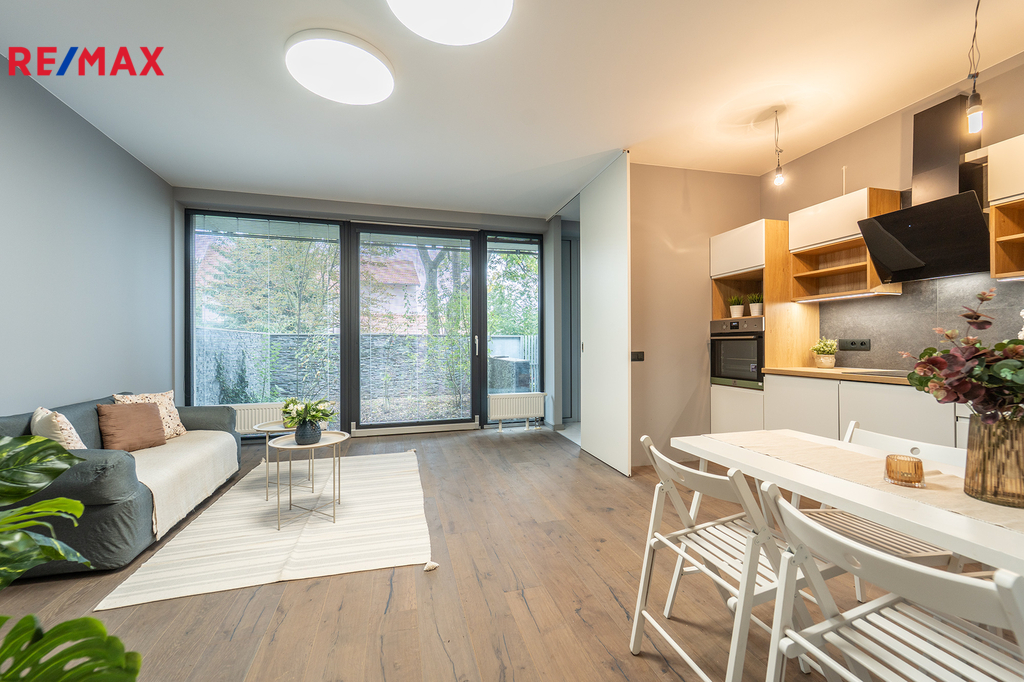Veškeré informace naleznete na www.prodej-bytu-hostivar.cz Nabízíme Vám ke koupi bytovou jednotku v perfektním stavu o celkové užitné ploše 65,6 m2 + soukromá předzahrádka o velikosti 29m2 + uzavřená terasa o velikosti 19,1 m2 + sklepní kóje 0,8 m2 a privátní garážové parkovací stání s vlastním vchodem do bytu přes předzahrádku. Byt, nacházející se v 1. nadzemním podlaží skeletového domu, se skládá z obývacího pokoje s kuchyňským koutem se vstupem na předzahrádku, dvou ložnic se vstupem na terasu, předsíně, koupelny, toalety a chodby. Byt v osobním vlastnictví je v perfektním technickém stavu. Okna jsou hliníková, jádro zděné, rozvody elektřiny v mědi. Okna jsou orientována z obývacího pokoje na východní světovou stranu, z obou ložnic poté na západ do vnitrobloku. Vnitřní prostory domu jsou ve výborném stavu, pravidelně udržované. Skeletový dům, kolaudovaný v roce 2013, je celkově zateplený a splňuje ty největší nároky na klidné a moderní bydlení. Náklady na provoz bytu včetně fondu oprav činí zhruba 4 600 Kč/měsíc + individuální spotřeba elektřiny v bytě. Byt se nachází v klidné části Prahy 10 – Hostivař, přímo u Hostivařského lesoparku a přehrady, které nabízí ideální podmínky pro sport i relaxaci v přírodě. Lokalita má kompletní občanskou vybavenost – školy, školky, obchody i zdravotní služby. Dopravní dostupnost je velmi dobrá: pár minut chůze se nachází zastávky MHD s přímým spojením na metro A (Skalka) i metro C (Opatov), nedaleko je také vlaková stanice Praha-Hostivař s rychlým spojením do centra. Autem se snadno napojíte na Jižní spojku i Pražský okruh. Koupi bytu lze financovat pomocí hypotečního úvěru, jež Vám taktéž pomůžeme výhodně zařídit. Spolupráce s konkurenčními realitními makléři vítána. PENB nebyl ze strany SVJ prozatím dodán, údaj bude aktualizován.