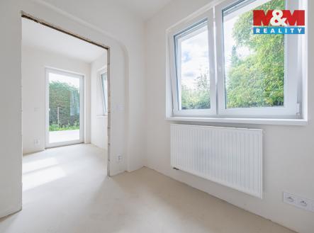 Nabízíme k prodeji prostorný byt o dispozici 4+1 v 1. nadzemním podlaží rodinného domu po kompletní rekonstrukci, situovaného v klidné rezidenční části Prahy 6 – Ruzyně. Celková podlahová plocha bytu činí 80,38 m² a tvoří ji chodba (11,82 m²), kuchyň (14,47 m²), tři pokoje (22,50 m², 11,61 m² a 7,80 m²), pracovna (4,79 m²) a dvě koupelny (3,87 m² a 3,86 m²). Z obývacího pokoje je přímý vstup na terasu, která volně navazuje na sdílenou zahradu o rozloze přibližně 230 m². Díky orientaci do klidného vnitrobloku a dostatku zeleně poskytuje tato část domu ideální prostor pro odpočinek, rodinné posezení či grilování. Dům je napojen na veřejný vodovod, kanalizaci, plyn a elektřinu, vytápění zajišťuje plynový kotel. Nemovitost se nachází v tiché a vyhledávané lokalitě Prahy 6, v blízkosti obory Hvězda, ideální pro procházky a pobyt v přírodě, s výbornou dopravní dostupností do centra města.