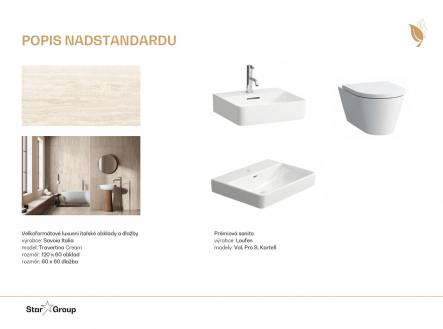 Moderní 4+kk s terasou 16,2 m² a zahradou 203,4 m² – nastěhování již letos! Hledáte domov, kde se můžete cítit bezpečně, a který zároveň disponuje kompletním zázemím pro pohodlný a klidný život? Tento byt 4+kk o velikosti 101,3 m² se nachází v 1. podlaží komorního viladomu a nabízí vše, co potřebujete – prostorný interiér, terasu o 16,2 m² a vlastní rozsáhlou zahradu o 203,4 m², kde si můžete užít chvíle zaslouženého odpočinku i rodinné pohody. Bytu byl nově navýšen standard provedení a pyšní se tak velkoformátovými obklady a dlažbou značky Savoia Italia a prémiovou sanitou značky Laufen. Navýšení standardu je zahrnuto v ceně bytu. Dispozice a vybavení: - byt 4+kk o velikosti 101,3 m² - terasa 16,2 m² a zahrada 203,4 m² - prémiový standard provedení: velkoformátové obklady a dlažba Savoia Italia, designová sanita Laufen (již v ceně bytu) - čtyři podlaží v domě – komorní atmosféra, klid a soukromí Další možnosti: - sklepní kóje k dokoupení (od 41.500 Kč/m² vč. DPH) - garážové stání v podzemí (520.000 Kč vč. DPH) – parkovací stání není podmínkou koupě bytu Lokalita a projekt: Byt je součástí projektu Nové Chabry, jedné z nejoblíbenějších rezidenčních lokalit v Praze. Projekt nabízí nejen moderní a bezpečné bydlení, ale i kompletní zázemí přímo v areálu – mateřskou školu, italskou restauraci, bistro, vinotéku, obchody, fitness, komunitní centrum i výdejní boxy e-shopů. Základní škola je vzdálena jen 10 minut klidné pěší chůze. Pro volný čas poslouží cyklostezky, venkovní posilovna a dětská hřiště. V okolí pak najdete Ďáblický háj, Čimické a Drahanské údolí i oblíbené aquacentrum Šutka. Dopravní dostupnost: Do centra Prahy se dostanete autem za 15 minut nebo autobusem za 5 minut na metro C – Kobylisy. V blízké budoucnosti přibude také nová tramvajová zastávka jen pár minut od projektu. Na stavbě již probíhají dokončovací práce, svůj nový domov si tedy můžete převzít v polovině roku 2026. *Zařízení interiéru na fotografiích a vizualizacích je pouze ilustrativní.*