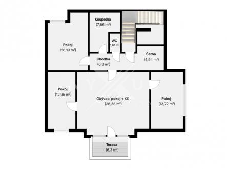 V nejvyšším podlaží kompletně zrekonstruované prvorepublikové vily se nachází tento výjimečný byt 4+kk o ploše 104 m², doplněný o terasu 6 m², půdní prostor 20 m² a sklep 9 m². Vila nabízí pouze tři bytové jednotky, což zajišťuje klid, soukromí a komorní atmosféru bydlení. Součástí prodeje jsou dvě venkovní parkovací stání. Dispozice bytu: - Chodba: 6,30 m² - Šatna: 4,94 m² - Obývací pokoj + kuchyňský kout: 36,36 m² - Pokoj 1: 16,19 m² - Pokoj 2: 13,72 m² - Pokoj 3: 12,95 m² - Koupelna s WC: 7,86 m² - Samostatné WC: 1,61 m² Příslušenství: - Terasa: 6,30 m² - Půda: 20 m² - Sklep: 9,24 m² Celková plocha 139 m² Byt je řešen s důrazem na pohodlí i funkčnost. Dominantou je otevřený obytný prostor s kuchyňským koutem a přímým vstupem na terasu. Dále jsou zde tři samostatné ložnice, koupelna s vanou, sprchovým koutem a toaletou, druhá toaleta oddělená a vstupní hala. K jednotce náleží také půdní prostor o velikosti 20 m², ideální pro uložení sezónních věcí či sportovního vybavení. Interiér kombinuje moderní technologie s elegancí. Dubové podlahy ve vzoru chevron krásně navazují na historický charakter vily. Okna i terasové dveře s izolačními trojskly přispívají k výbornému akustickému i tepelnému komfortu. Koupelna je vybavena sanitou značek Villeroy & Boch a Hansgrohe, doplněnou velkoformátovými obklady od italského výrobce Casalgrande Padana. Interiérové designové dveře Vekra s magnetickým zámkem. O tepelný komfort po celý rok se stará podlahové vytápění a chlazení napojené na tepelné čerpadlo, ovladatelné přes mobilní aplikaci, v hlavních obytných místnostech jsou navíc klimatizační jednotky. Dům splňuje energetickou třídu B, což znamená nízké provozní náklady a vstupní dveře jsou bezpečnostní. Zbraslav patří mezi rezidenční lokality s dostatkem zeleně. V okolí najdete školy, školky, obchody, restaurace, kavárny i zdravotní služby. K relaxaci i sportu vybízí blízký lesopark Belveder nebo volnočasový areál Nad Parkem. Pravidelné autobusové i vlakové spoje na Smíchov, autem jste v centru Prahy přibližně za 25 minut. Další informace: Energetická náročnost budovy: třída B – velmi úsporná. Nemovitost je v osobním vlastnictví a lze ji tedy financovat hypotečním úvěrem, který Vám zdarma pomůžeme vyřídit za nejvýhodnějších podmínek na trhu. Zaujala vás tato nabídka? Neváhejte mě kontaktovat pro více informací nebo si rovnou domluvit termín prohlídky. Těším se na setkání s vámi!