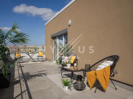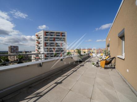 Prodej bytu 4+kk - 112 m² + terasa 46 m², dvě garážová stání, Mantovská, Praha 10 - Horní Měcholupy