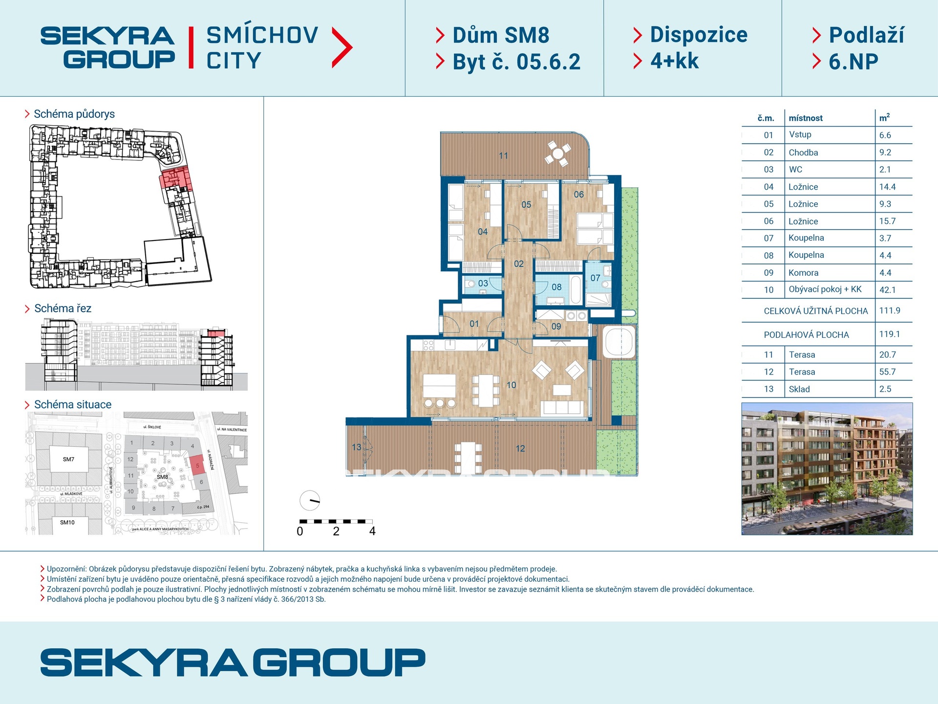 Prodej bytu 4+kk, 119,1 m², terasa 78,9 m², Smíchov City, blok SM8