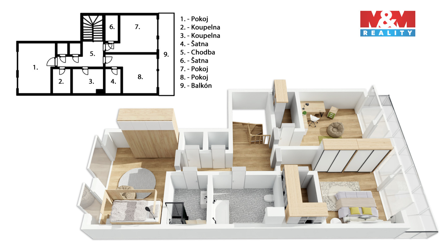 V zastoupení majitele nabízíme ke koupi výjimečný mezonetový byt nacházející se v přízemí a prvním patře udržovaného domu se zahradou a garáží. V přízemí se nachází prostorný obývací pokoj s nadstandardně vybavenou kuchyňskou linkou, jídelnou a vstupem na velkou terasu. Dále bar s vinotékou, pracovna, krb, toaleta, úložný prostor a vstupní chodba. V patře jsou tři ložnice, z nichž dva s vestavěnou šatnou. Dvě menší šatny jsou poté na chodbě. K dispozici jsou dvě koupelny s toaletou a balkon o velikosti 14 m², přístupný ze dvou ložnic. K bytu náleží dvě parkovací místa v garáži. Obyvatelé mohou využívat společnou zahradu s posezením a sdílenou saunu. Dům se nachází v oblíbené lokalitě Praha 6 – Břevnov s výbornou dopravní dostupností do centra, v blízkosti letiště i mezinárodních škol. Veškerá občanská vybavenost je v dosahu. Pro více informací nebo sjednání osobní prohlídky mě neváhejte kontaktovat.