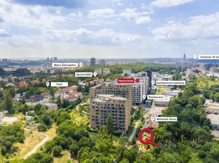 Exkluzivně nabízíme k prodeji dispozičně zajímavě řešený a prostorný byt 4+kk užitné plochy 108 m2, s lodžií 5 m2 a dvěma balkóny 14 m2, který se nachází v 6. nadzemním podlaží devítipodlažního bytového domu z roku 2018 (projekt "Byty-Třebešín"). Celková plocha včetně balkónů a lodžie je 127 m2. Byt je orientovaný na sever a západ a poskytuje nádherné výhledy na Prahu. Dům je ve výborném stavu, má celkem 3 výtahy ve dvou vchodech, kamerový bezpečnostní systém a garážová stání ve dvou podzemních podlažích. PENB - B, velmi úsporná budova. Obývací pokoj (41,5 m2) je situovaný na sever a západ, má vkusně řešený jídelní kout, kvalitní, plně vybavenou kuchyňskou linku a výstup na lodžii a balkón, který je společný s pracovnou (11 m2) a pokojem (14,6 m2). Ložnice o rozloze 19,2 m2, orientovaná na sever a východ, má menší balkón, skříně na míru a vlastní koupelnu se sprchovým koutem a toaletou (3,1 m2). Všechny místnosti jsou neprůchozí, samostatně přístupné z předsíně (15,1 m2). Hlavní koupelna (4,4 m2) má vanu a toaletu. Ve všech pokojích jsou plovoucí podlahy se zvýšenou odolností, v předsíni a koupelnách velkoformátové dlažby a obklady. Vstupní dveře jsou bezpečnostní. K bytu náleží výlučné užívání garážového stání v 1. podzemním podlaží domu, které má výhodnou pozici umožňující bezproblémové nastupování do vozu. Vjezd do prostoru garáží je širokými, dálkově ovládanými vraty. V lokalitě a jejím okolí je veškerá vybavenost - dvě MŠ, ZŠ, sportoviště, obchod s potravinami a několik restaurací. Výborná je dopravní dostupnost, zastávka MHD se spojením na metro je cca 2 min chůze. Vzhledem k velikosti a dispozici bytu, velmi klidné lokalitě s výbornou vybaveností, příjemné zástavbě rodinnými domy v sousedství a klidovými zónami s parky a sportovišti, se jedná o velice zajímavou nabídku pro rodiny s dětmi. Nemovitost lze financovat hypotékou, kterou Vám rádi pomůžeme vyřídit. Další informace Vám rád poskytnu na vyžádání nebo při prohlídce nemovitosti.