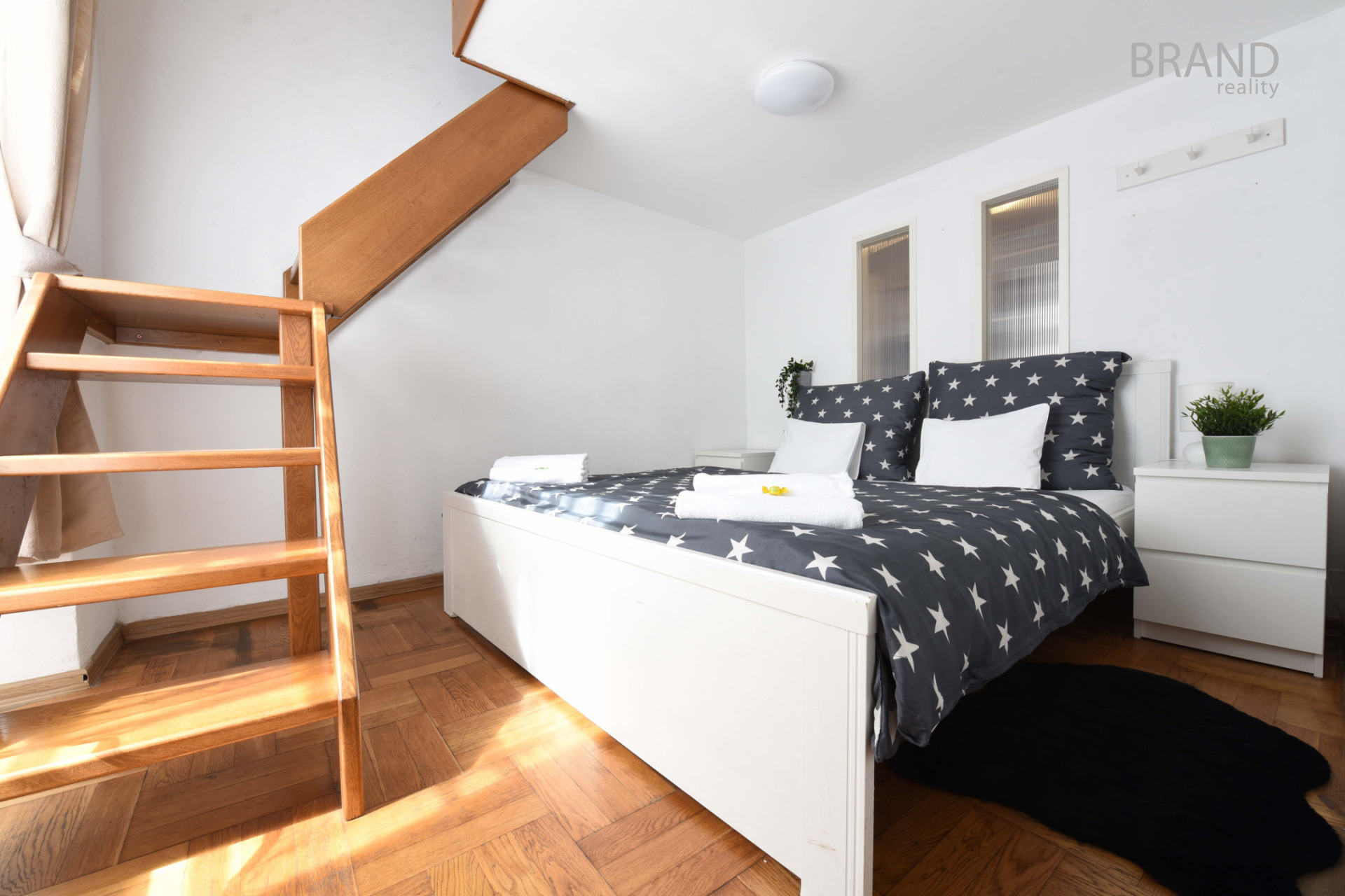 Atypická bytová jednotka 5+2 o rozloze 91 m2, rozdělená a kolaudovaná na dva byty (3+kk a 2+kk) se samostatnými vstupy, má 2x kuchyň s vestavěnými spotřebiči, 2x koupelnu se sprchovým koutem a WC, vestavěná patra na spaní viz. foto, dřevěné podlahy, dlažbu, špaletová okna. Dům po rekonstrukci společných prostor, nový výtah. Přednosti bytové jednotky (bytů) jsou: - defakto vlastnit dva byty vedle sebe. - možnost opětovného propojení obou bytů (dvougenerační bydlení). - výborná investice s návratností přes 10% ročně! Byty mají stálou obsazenost. Více informací u makléře. Lokalita: netřeba zmiňovat, že se jedná o jednu z prestižních adres v srdci Prahy, mezi Staroměstským náměstím a Uhelným trhem. Možno financovat hypotéčním úvěrem.