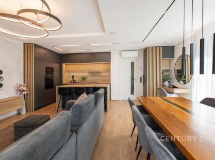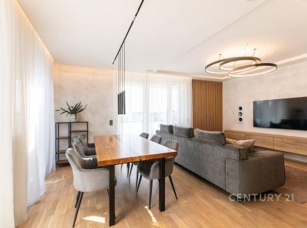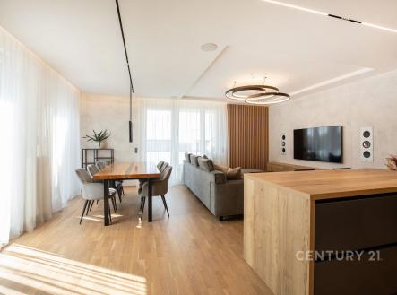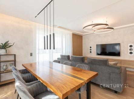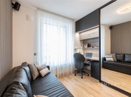 Exkluzivní bydlení : byt 5+kk s terasou a lodžií – Rezidence RANTA, Praha 5 – Hlubočepy Představte si domov, kde se snoubí špičkový design, nejmodernější technologie a klidné prostředí. Domov, který vám nabídne pocit luxusu každý den, ale zároveň úsporný provoz a dokonalý komfort. Přesně takový je tento jedinečný byt 5+kk o rozloze 140 m² v prestižní rezidenci RANTA. Prostor, světlo a vzdušnost Srdcem bytu je velkorysý obývací pokoj, který vás okouzlí svou světlostí a propojením s moderní kuchyní i jídelním koutem. Díky přímému vstupu na terasu o velikosti 16 m² a lodžii o celkových 30 m², které obepínají velkou část bytu, získává interiér unikátní propojení s venkovním prostorem. Ať už si ráno vychutnáte kávu s výhledem nebo večer relaxujete s rodinou, vždy budete mít pocit, že příroda je součástí vašeho domova. Komfort pro celou rodinu Byt disponuje čtyřmi samostatnými ložnicemi, které zajistí dostatek soukromí všem členům domácnosti. Dvě elegantní koupelny – jedna s vanou, druhá se sprchovým koutem – doplněné o tři toalety, předsíň, chodbu a praktickou komoru podtrhují funkčnost celé dispozice. Design a technologie, které si zamilujete Každý detail tohoto bytu byl promyšlen s důrazem na pohodlí a kvalitu: kuchyňská linka s ostrůvkem a špičkovými spotřebiči vestavěné skříně nabízející dostatek úložného prostoru klimatizace v každém pokoji a předokenní žaluzie pro maximální komfort ambientní osvětlení vestavěná audio sestava pro dokonalou atmosféru v obýváku kvalitní poslech hudby zajišťuje navíc domácí kino audio též v koupelně a pracovně ( jednoduché ovládání ze Spotify) zabezpečovací systém Jablotron pro váš klid Praktické detaily, které potěší K bytu náleží dvě garážová stání (garážová vrata se ovládají přes mobilní telefon) a velký zděný sklep s regály, kde uložíte vše, co potřebujete. Terasa je navíc vybavena vodovodem – ideální pro péči o zeleň, grilování či letní osvěžení. Přístup do bytu je přes chodbu, na které se nacházejí pouze 2 bytové jednotky. Vstup je možný pouze přes čip, což zdokonaluje pocit soukromí. Lokalita, která má vše Rezidence RANTA se nachází v oblíbené lokalitě Prahy 5 – Hlubočepy. Jen pár kroků vás dělí od kouzelného Prokopského údolí, které je ideální pro sport, procházky i relaxaci v přírodě. Přitom máte doslova na dosah ruky kompletní občanskou vybavenost – školy, školky, obchody, restaurace, dětská hřiště, fitness centra i vodní areál AquaDream. Vzdálenost k MHD (autobus, tramvaj) je 300m. Do centra města i na letiště se dostanete během krátké doby. Domov, který si zamilujete Tento byt je víc než jen nemovitost – je to životní styl. Nabízí prostor, světlo, pohodlí a bezpečí, zároveň vám umožní každý den prožívat spojení s přírodou, aniž byste se vzdali výhod velkoměsta. Pokud hledáte skutečně výjimečné bydlení, kde se snoubí luxus, klid a moderní technologie, neváhejte nás kontaktovat a domluvte si osobní prohlídku. Tento byt si zamilujete na první pohled.