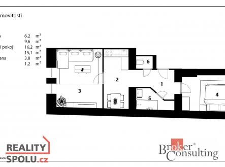Prodej bytu, 2+1, 55,4 m²