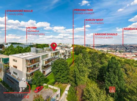 Rádi bychom Vám představili vyjímečný byt v luxusním ,,Gated Community” areálu - Villa Park Strahov, který díky své poloze nabízí exkluzivní výhled na historickou část města a svým obyvatelům poskytuje tu nejvyšší možnou úroveň zabezpečení a soukromí v jedné z nejkrásnějších částí města Prahy. Navíc 10 minut chůze od Petřínské rozhledny či Kinského zahrady. Základní údaje o nemovitosti dispozice: byt 2+kk, 3 NP užitná plocha: 57 m², balkón: 4 m² kompletně nadstandardně vybavený - Italský nábytek, dřevěné podlahy, mramorové pracovní plochy v kuchyni, vestavné úložné prostory, venkovní rolety… zázemí: sdílený park v areálu, 1 garážové parkovací stání, recepce 24/7, zděná sklepní místnost technologie: bezpečnostní alarm, klíče s integrovaným čipem, podlahové topení, klimatizace, videotelefon Technický stav bytu a jeho vybavení je výborný. Nemovitost nebyla trvale obývaná. Tento byt je vhodný pro ty, kteří od bydlení žádají něco vyjímečného a zakládají si na soukromí, klidu a exkluzivitě.
