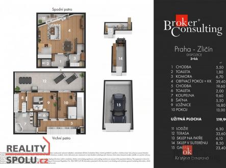 Prodej prostorného dvoupatrového bytu 3+kk (120 m²) s terasou, lodžií a garáží – Praha 5 – Zličín Nabízíme k prodeji slunný, dvoupatrový byt 3+kk o celkové ploše 120 m², který se nachází v moderní a klidné lokalitě Praha 5 – Zličín. Byt zaujme především svou velkou terasou s krásným výhledem do okolí, která poskytuje maximální soukromí a ideální prostor pro odpočinek, relaxaci či grilování. Součástí bytu je také zasklená lodžie, kterou lze pohodlně využívat jako zimní zahradu. Dispozice bytu je prakticky řešená a nabízí velké množství úložných prostor, šatnu, prostornou komoru a dvě samostatné toalety. K bytu dále náleží uzavřené garážové stání a dva sklepy, které zajišťují dostatek úložného i parkovacího komfortu. Každý pokoj je vybaven klimatizací, venkovními žaluziemi a chytrým osvětlením, což výrazně zvyšuje komfort bydlení. Dům je zateplen a využívá sdílené solární panely, které pomáhají snižovat provozní náklady na společné prostory. Byt se nachází v moderní lokalitě Zličín, která kombinuje klidné a bezpečné prostředí s vynikající dopravní dostupností – metro linky B i pražská integrovaná doprava zajišťují rychlé spojení do centra města. V okolí se nachází kompletní občanská vybavenost – nákupní centrum Metropole Zličín, obchody, restaurace, školky, školy, sportoviště a řada dětských hřišť. Tento byt představuje ideální volbu pro rodiny i náročnější klienty, kteří hledají komfortní a moderní bydlení v atraktivní části Prahy.