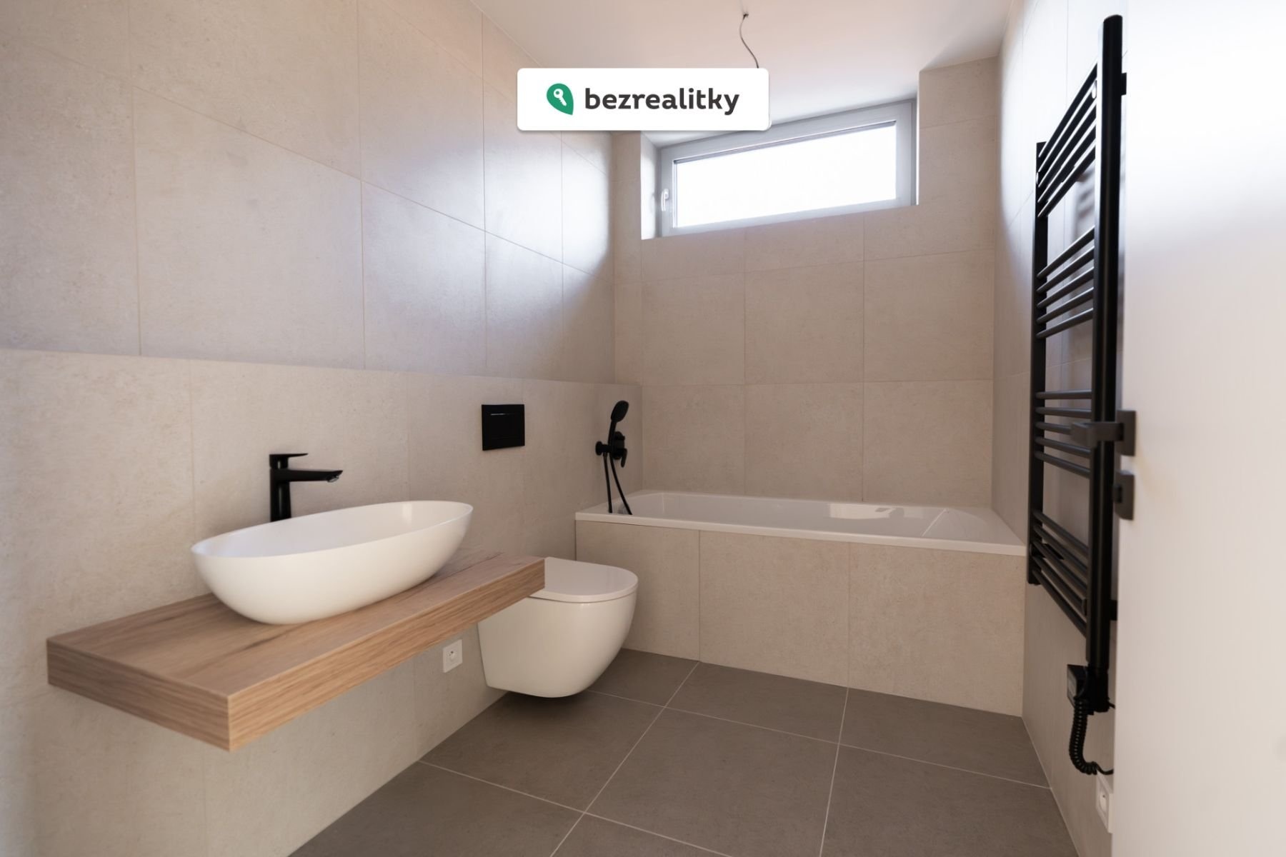 Exkluzivní nabídka prodeje novostavby rodinného domu s předzahrádkou o dispozici 4+kk a podlahové ploše 140,1m2, pozemek celkem 175m2 a 2 parkovací stání na pozemku. Tento moderní dům se nachází v klidné a žádané lokalitě Dolních Měcholup. V těsně́ blízkosti domu naleznete mateřskou školku, základní́ školu, nákupní možnosti (5min autem Fashion Arena Štěrboholy, EUROPARK), atd., sportovní vyžití jako hala, venkovní posilovna, park či hned přes ulici dětské hřiště. Kolaudace domu 2/2026, ihned k nastěhování. Stavba je již plně dokončena a nyní probíhají venkovní práce okolo domu, oplocení a další drobné dokončovací práce. Na stavbu byly použity materiály a technologie té nejvyšší kvality. Objekt je z porothermových cihel s železo-betonovými stropy. Nadstandardně velké hliníkové HS portály jsou dominantou celého domu a místnostem dodávají dostatečný pocit vzdušnosti a propojení s okolním prostředím. Izolační trojskla jsou samozřejmostí. Střešní světlík zase krásně prosvětlí chodbu uvnitř domu. Vytápění domu je řešeno tepelným čerpadlem vzduch-voda s integrovaným zásobníkem vody a podlahovým vytápěním. Podlahová krytina byla zvolena kvalitní třívrstvá dřevěná podlaha. Jako obklady a dlažby v koupelnách od designové italské společnosti Atlas Concorde, formát 60x60cm. Zařizovací předměty pak převážně Hansgrohe, Grohe anebo Geberit. Interiér doplňují nenápadná designová svítidla. Interiérové bezfalcové dveře výšky 210 cm. Elektrická vjezdová brána. Přízemí je projektováno na obývací́ pokoj s otevřeným prostorem pro kuchyni (Naleznete zde připravené veškeré rozvody technologií už na určená místa spotřebičů) a vstupem na terasu na níž̌ navazuje zahrada. Propojení obývacího pokoje se zahradou posuvným bezprahovým hliníkovým HS portálem. Tato místnost je srdcem domu a nabízí krásný prosvětlený prostor s výstupem na zahradu s terasou. Příjemnému světlému prostoru dodává šmrnc velké rohové okno. Dále se zde nachází předsíň, toaleta, technická́ místnost (kde jsou směřované veškeré technologie jako TČ, elektro rozvaděč atd. a zároveň nabízí prostor pro uskladnění věcí) a schodišťová chodba. Po chodbě se schodištěm dostanete do 2NP, kde se z hlavní chodby vchází do celkem 3 pokojů a 2 koupelen. Součástí domu jsou také kastlíky na předokenní venkovní žaluzie na všech oknech, rozvody připravené na osazení klimatizačních jednotek či na fotovoltaiku a v neposlední řadě pro elektro nabíjení vozidla nebo krbovou vložku. Skrz patra vede předpřipravený shoz prádla do technické místnosti. Na zahradě se nachází retenční nádrž na dešťovou vodu, která může být použita na závlahu předzahrádky. Třída energetické náročnosti pro tento objekt je B-velmi úsporná. Celková hrubá podlažní plocha: 169,2 m2 Užitná plocha: 126,8 m² Cena je četně DPH. Pro domluvení prohlídky nás neváhejte kontaktovat. Vizualizace a uvedené výměry (m²) se mohou mírně lišit od skutečného stavu. Realitní kanceláře nevolat! Tato nemovitost je určena výhradně přímým zájemcům o koupi. Na inzerát můžete také reagovat přímo na webu Bezrealitky.