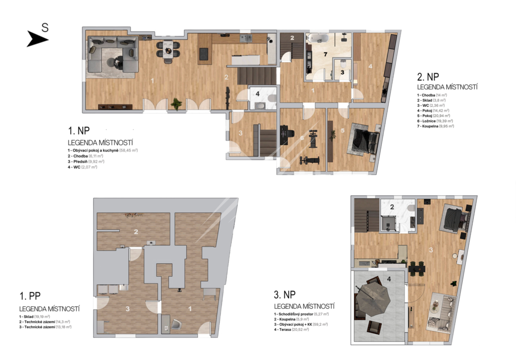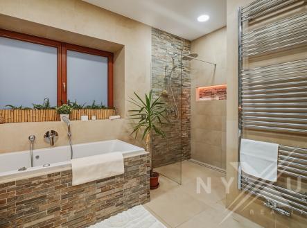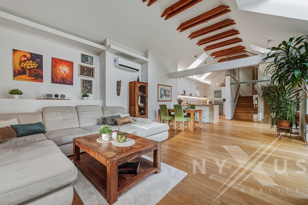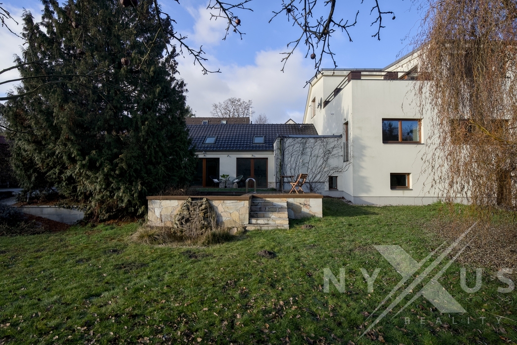 Tento rodinný dům patří k nemovitostem, které nejsou zaměnitelné s běžnou katalogovou novostavbou a podobných na trhu uvidíte jen zřídka. Nabízí dispozici 5+2kk, užitnou plochu 308 m² a pozemek o velikosti 1 002 m². Dům je zasazený do klidného prostředí se zelení, s mírou soukromí, která v rámci Prahy není samozřejmostí. Hlavním obytným prostorem je otevřený obývací pokoj propojený s kuchyní a jídelní částí o celkové ploše 58,45 m². Od zbývající obytné části je oddělen skleněnou stěnou a velká dřevěná okna s protihlukovými trojskly přivádějí do interiéru dostatek denního světla a zároveň zachovávají klid s příjemným výhledem do zahrady. Interiér je postaven na kvalitních materiálech – třívrstvé dubové podlahy s anhydritovým podkladem a teplovodním podlahovým topením, v menších místnostech doplněné o radiátory. Osvětlení je řešeno LED rampami na míru s důrazem na přirozený světelný komfort s možností tlumení a změny barev. V další části domu se nachází tzv. klidová část, kde jsou tři pokoje využívané jako ložnice, pracovna a šatna (lze z nich udělat plnohodnotné 3 ložnice nebo třeba dětský pokoj), dále koupelna s masážní vanou a technické zázemí. Horní patro funguje téměř jako samostatná jednotka, nicméně se vchodem skrze hlavní část. Aktuálně je řešeno jako prostorné 1+kk s vlastní kuchyní, koupelnou a terasou s výhledem do zahrady, přičemž prostor lze snadno rozdělit na 2+kk. Výhodou je také, že terasa má přívod vody, připravenou elektřinu pro pergolu a nosnost pro vířivku. Dům má rekuperaci, která je řízena vlhkostními čidly a běží nepřetržitě podle kvality vzduchu. Je plně klimatizovaný, vybaven centrálním vysavačem, zabezpečovacím a kamerovým systémem. Vytápění a ohřev vody zajišťuje elektrokotel, s případnou možností připojení na plyn. Zajímavostí je také prádelní shoz až k prádelně ve sklepě. Velkým benefitem je sklep se samostatným vstupem ze zahrady, vhodný pro wellness, podnikání nebo skladování. Součástí pozemku je parkování až pro čtyři vozy s možností vybudování nabíjecí stanice pro elektromobil, to vše za elektricky ovládanou bránou na dálku. Lokalita domu podtrhuje jeho celkový charakter. V bezprostředním okolí navazuje chráněný biokoridor podél Rokytky, který zajišťuje dlouhodobý klid a otevřený prostor bez další zástavby. Jen pár minut chůze od domu se nachází lesopark s rozhlednou Doubravka, jedním z nejvýraznějších rekreačních míst této části Prahy. Prostředí tak nabízí kombinaci soukromí, zeleně a města v rozumném dosahu. Dům má jasně čitelný charakter, promyšlené technické řešení a prostředí, které si zachová svou hodnotu i do budoucna. Pokud vás zaujal, rád vás jím osobně provedu.