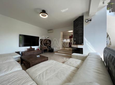 Představuji luxusní a prostornou vilu na prodej v městské části Záběhlice v ulici Dolní Chaloupky, kde najdete klid a pohodlí kousek od centra velkoměsta. Dům prošel rekonstrukcí vnitřních prostor v roce 2015 , kterou si majitel prováděl pro sebe a nabízí mnoho prostoru ve dvou patrech. V přízemí má dům prostorný obývací pokoj s kuchyňským koutem a jídelnou, ložnici, koupelnu se sprchou a wc, technickou místnost, saunu s prádelnou a garáž. V prvním patře jsou 3 pokoje, koupelna s vanou a wc, odpočinková část - galerie. V domě je rozvod internetu kabelem, samozřejmě nechybí ani bezpečnostní systém. Ve třech obytných místnostech jsou klimatizační jednotky, a tak nemusíte mít obavy z teplých dnů. Prostorná kuchyň je plně vybavena kvalitními spotřebiči včetně americké lednice. Systém vytápění a ohřev teplé vody probíhá plynovým kotlem, spotřeba cca 4.000,- Kč/měsíc. Nesmím opomenout zahradu, která je umístěna pod domem přes cestu o výměře 197m2, kde naleznete klid, bazén o rozměrech 6x3 a zahradní domek. V okolí domu nalezneme veškerou občanskou vybavenost a ta je zastoupená obchody a službami v nedalekém OC Květ. Čtyři minuty chůze od domu je vzdálená autobusová zastávka U Lípy, odkud vás autobus pohodlně doveze k metru stanice Skalka. Neváhejte mě kontaktovat pro více informací a domluvení prohlídky.