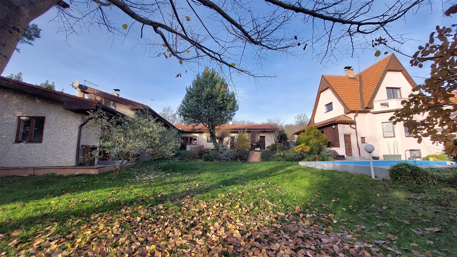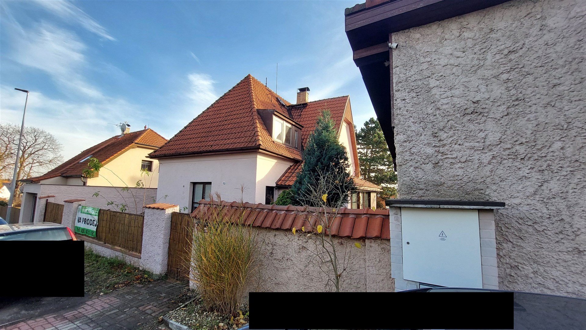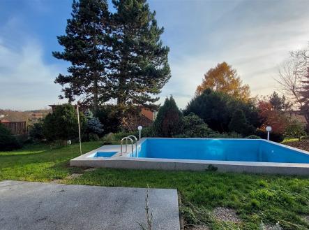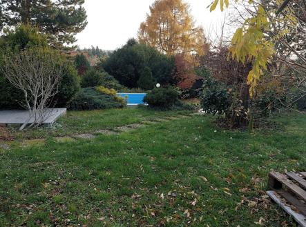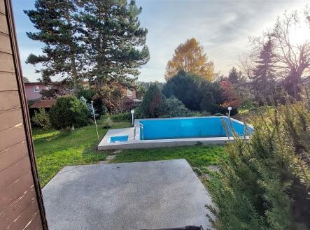 Prodej dvou domů s velkým pozemkem 1281 m2 a bazénem – Praha 12, Točná (Branišovská ul).