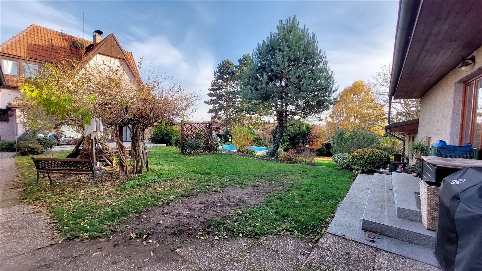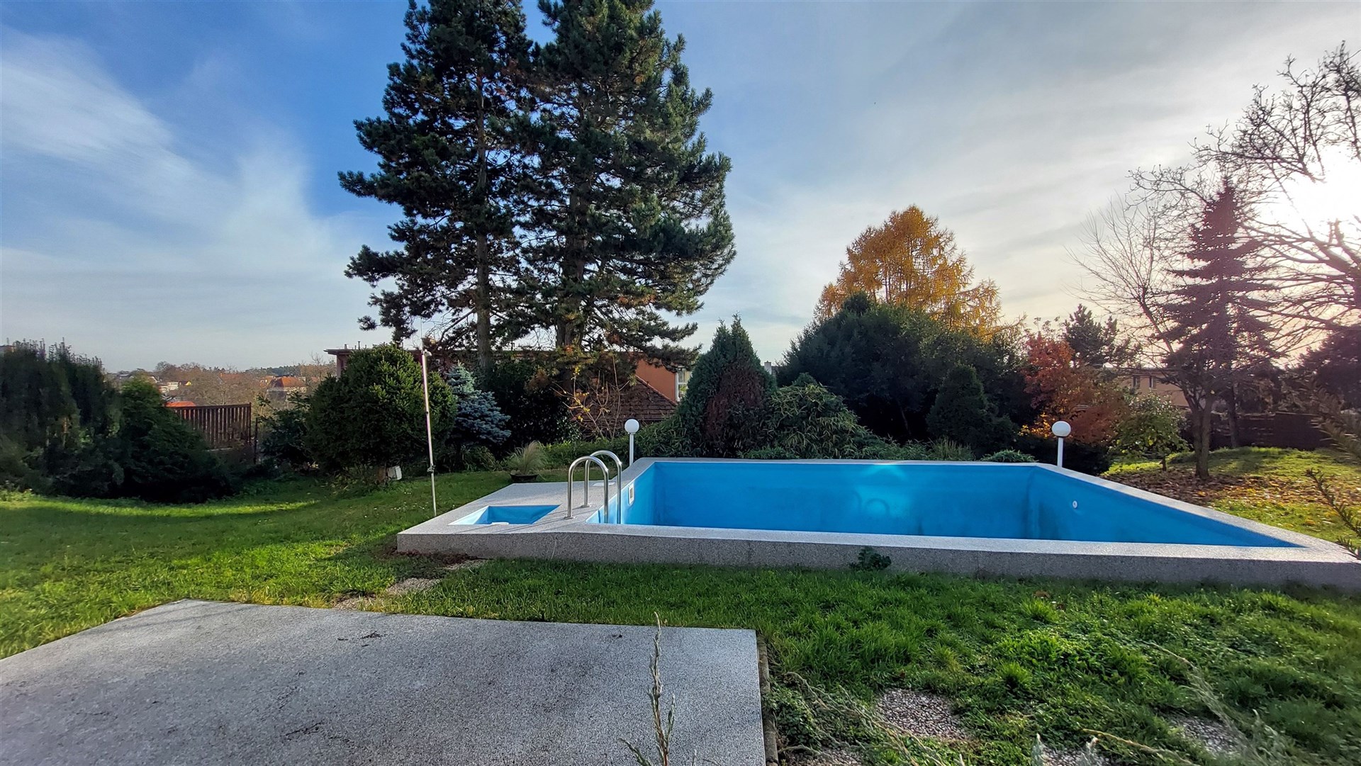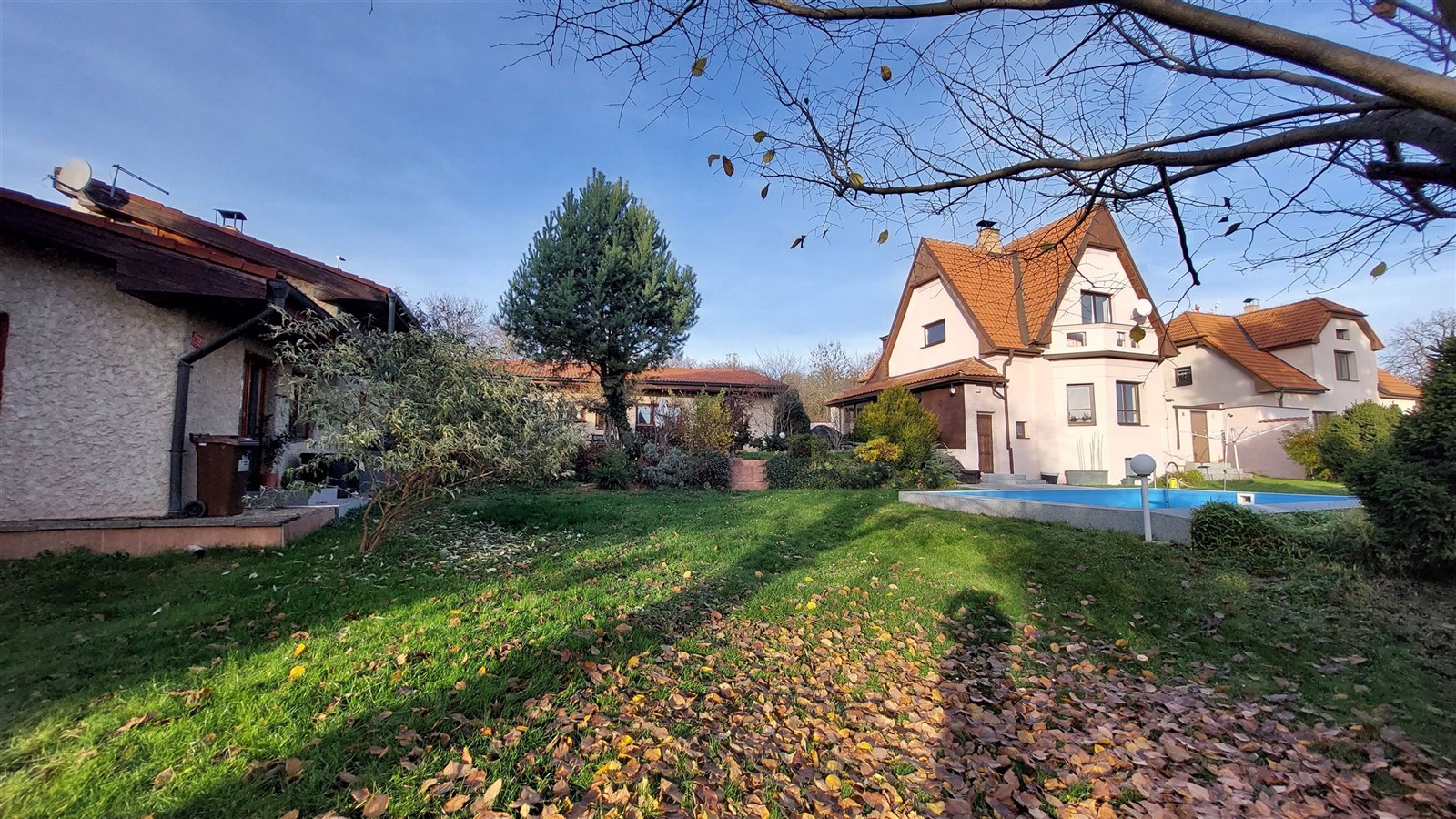 Prodej dvou domů s velkým pozemkem 1281 m2 a bazénem – Praha 12, Točná (Branišovská ul).