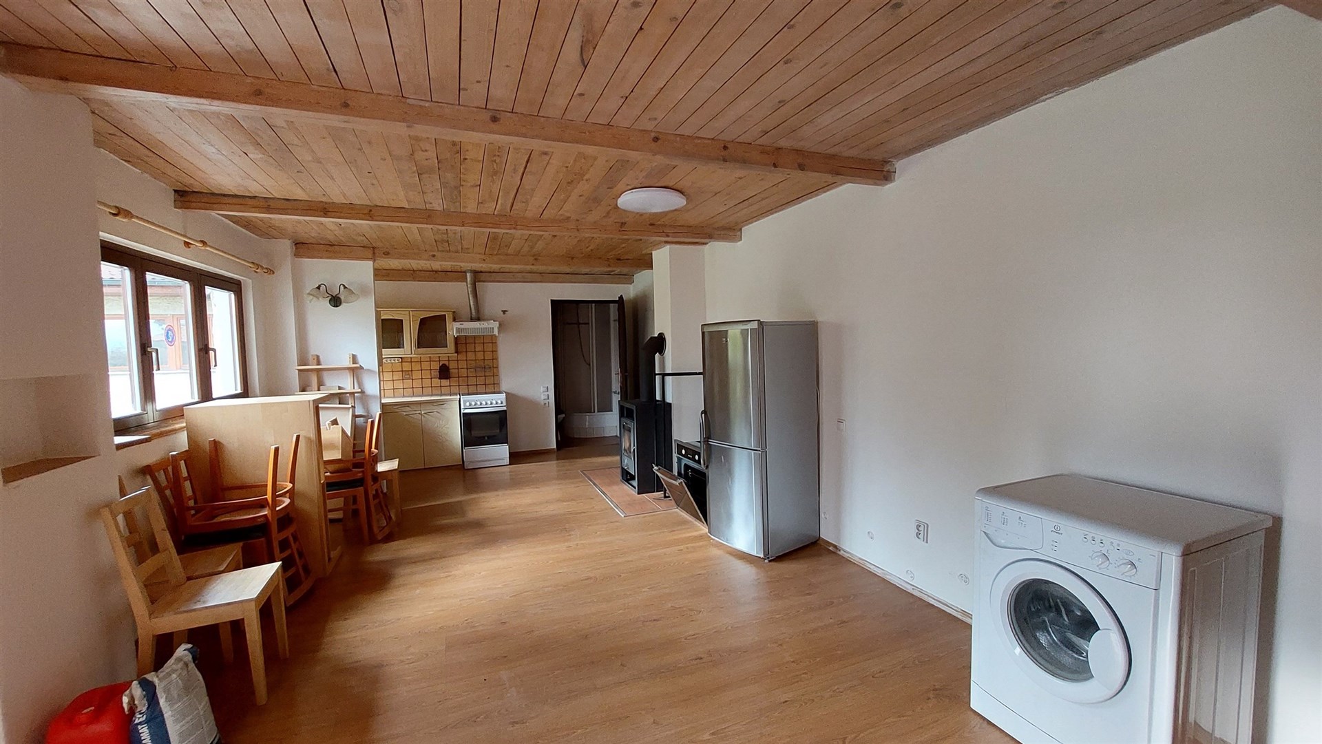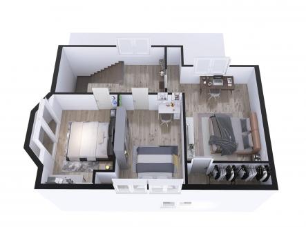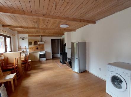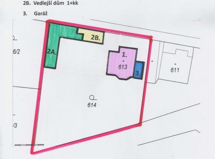 Nabízíme k prodeji dva domy : prostorný rodinný dům 4+kk a samostatný dům (ateliér) se dvěma byty . Domy jsou situovány v krásné velké zahradě. Nacházejí se v klidné části Prahy 12 – Točné. Hlavní dům (150 m2 užitná plocha) nabízí velký obývací pokoj s oboustranným krbem, prostorný kuchyňský kout, velkou koupelnu se sprchovým koutem, šatnu a v přízemí příruční kuchyňku. V patře jsou tři ložnice, z toho jedna s balkonem. Dům je částečně podsklepen, ve sklepě se nachází plynový kotel. Na podlahách v přízemí je dřevo, v patře koberce. K domu náleží garáž o velikosti 15 m². Vedlejší dům : má dva samostatné byty: 3+kk s vlastním vstupem z ulice a 1+kk se vstupem ze zahrady. Byt 3+kk (užitná plocha 105 m2) nabízí obývací pokoj s galerií, dvě ložnice, dvě koupelny (jedna s rohovou vanou) Dům je vybaven téměř novou kuchyní . Má krbová kamna. Druhý byt 1+kk ,( užitná plocha 32 m2) má vlastní kuchyňku a koupelnu se sprchovým koutem. Rovněž je vybaven kamny. Objekt lze využít také jako studio nebo prostor pro podnikání nebo prodejnu do ulice je možné mít výlohu. Na udržované zahradě je zapuštěný bazén (4x5,5 m, hloubka 180 cm) a zastřešený altán s posezením. Před plotem jsou tři parkovací stání . Ze spodní ulice – Hospodářská je branka a je zde možné také parkování . Domy vyžadují částečné opravy. (NEBO ÚPRAVY). Lokalita: Točná je klidná městská část s výbornou dostupností do centra Prahy. V blízkosti najdete přírodní rezervaci Točná, lesopark Cholupice, letiště Točná s kavárnou, dětské hřiště, školu, obchod s potravinami, restauraci a zastávku MHD se spojením na metro C – Kačerov. Další informace: • zatím je v provozu jímka, v Točné byla zahájena výstavba kanalizace. Etapa ulice Branišovská je před vydáním stavebního povolení. • studna na zahradě Nemovitost je ideální pro vícegenerační bydlení nebo propojení domova s podnikáním.