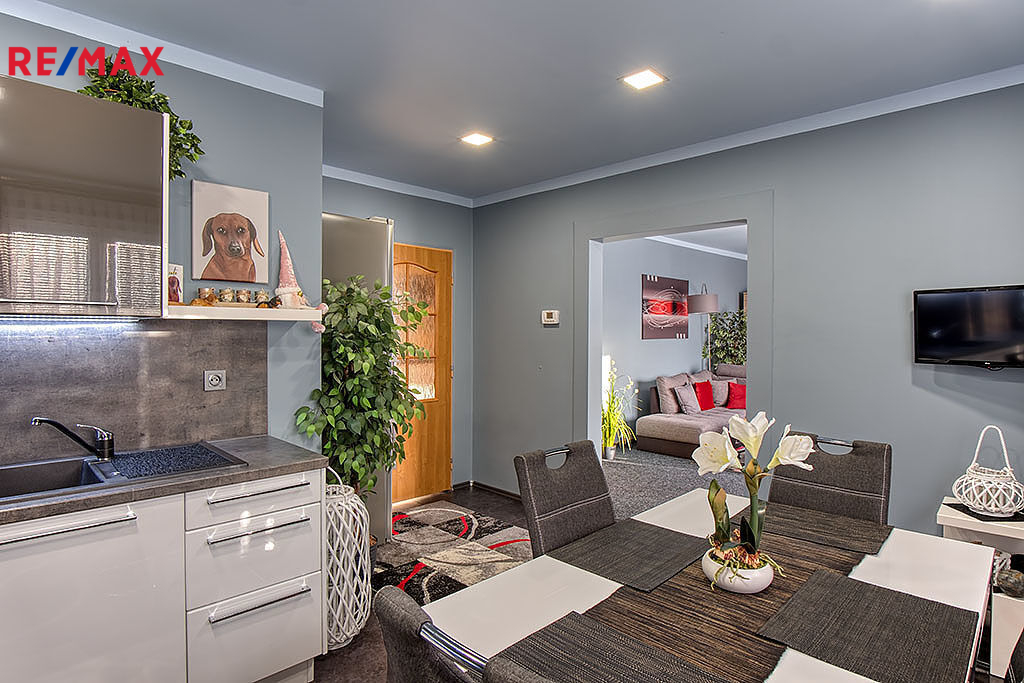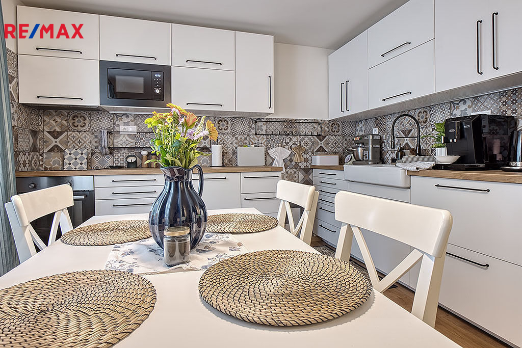 Ve výhradním zastoupení prodávajícího nabízíme na prodej dvougenerační rodinný dům, ulice Na Barikádách, Praha 9 - Čakovice s užitnou plochou 292 m2. Jedná se o zděný dům s dispozicí 4+2 (3+1 a 1+1) s udržovanou zahradou orientovanou na jihozápad. Součástí zahrady je zděný zahradní domek. Dům je postaven na rovinatém pozemku o výměře 602 m2 v klidné lokalitě na okraji Prahy. Dům je vhodný i pro podnikám v 1.NP (kancelář, ordinace, ...) a současně bydlení v 2.NP. V 1.NP se nachází bytová jednotka s dispozicí 1+1 a skládá se z chodby, kuchyně s jídelním koutem, obývacího pokoje s přímým vstupem na zahradu, koupelny s vanou, samostatného WC, společného zádveří, garáže a centrálního schodiště. V 2.NP se nachází bytová jednotka s dispozicí 3+1 a skládá se z chodby, kuchyně s jídelním koutem, obývacího pokoje s balkónem, ložnice s balónem, pokoje a koupelny s vanou a WC. V suterénu se nachází sušárna, prádelna, spíž, sklad a kotelna. Vytápění je řešeno plynovým kondenzačním kotlem Protherm, ohřev vody el. bojlerem o objemu 300 l. Okna jsou plastová s izolačním dvojsklem z roku 2005. Dům je napojen na elektřinu, plynovod, vodovod a kanalizaci. Nízké náklady na bydlení: elektřina 4.250,-Kč/měs., plyn 2.900,-Kč/měs. V roce 2020 dům prošel rekonstrukcí v interiéru, nové kuchyňské linky s vestavnými spotřebiči, vnitřní dveře, výmalby, obklady, dlažby, sanitární vybavení, elektrický ohřívač vody. Veškerá občanská vybavenost je v okolí, škola, školka, sportovní centrum, obchodní centra, restaurace, koupaliště dětská hřiště a pošta. V pěší vzdálenosti se nachází Čakovický zámecký park, v nedaleké Vinoři golfové hřiště. Výborná dopravní obslužnost vlaková zastávka Praha-Čakovice, zastávka BUS, metro Letňany. Nedaleko nájezdy na dálnice D8 a D10 a Jižní spojku. Součástí nabídky jsou i půdorysy. V případě zájmu o další informace nebo prohlídku kontaktujte makléře nabídky.