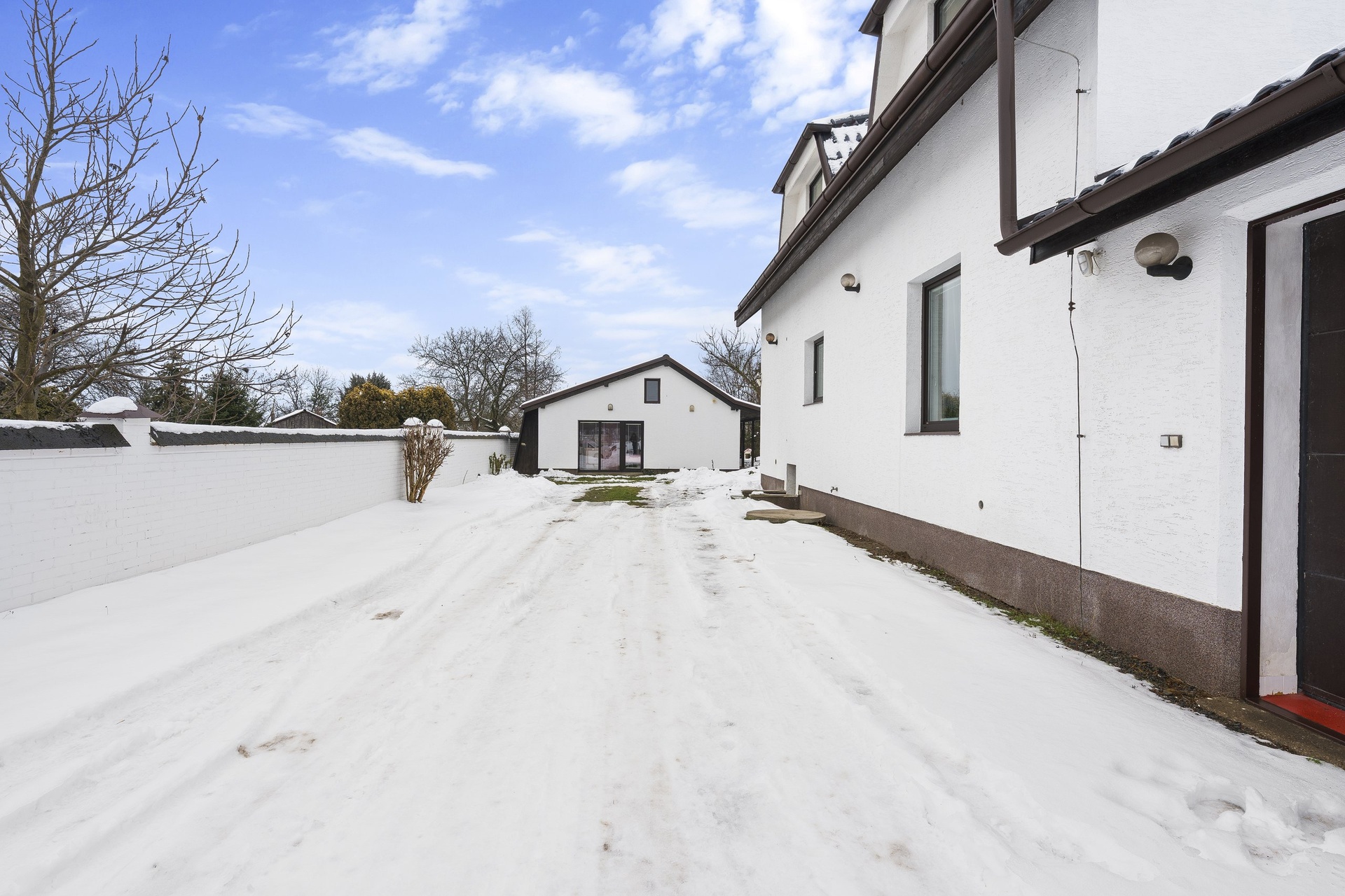Nabízíme k prodeji výjimečný dvoupodlažní rodinný dům o dispozici 4+1 s vedlejším domkem o dispozici 2+kk, situovaný v klidné a vyhledávané části Prahy – Kyje, na adrese Borská, Praha - Kyje. Nemovitost se nachází na rohovém pozemku o celkové výměře 758 m2, který zajišťuje nadstandardní míru soukromí, a je ideální volbou pro náročné klienty hledající komfortní rodinné bydlení s přidanou hodnotou. Hlavní dům Dům je podsklepený, dispozičně velmi dobře řešený a nabízí dostatek prostoru, světla i funkčního zázemí. dispozice 4+1 dvě nadzemní podlaží prostorný obývací prostor s kuchyňským koutem 3 x ložnice otevřená pracovna v patře 2 x koupelna ( 1 x s vanou, sprchovým koutem a WC v přízemí a 1x se sprchovým koutem a WC v patře předsíň velká garáž s montážní jámou dílna sklepní prostory poskytující dostatek úložného i technického zázemí Nemovitost prošla v posledních letech modernizací: nová okna s bezpečnostními skly, izolace stropů, nové radiátory a rozvody topení, moderní kuchyně, skleněné schodiště do patra, vinylové podlahové krytiny atd. Vedlejší dům na zahradě Součástí pozemku je také samostatný menší domek o dispozici 2+kk s vlastní koupelnou se sprchovým koutem. Domek je zateplen a vytápěn tepelným čerpadlem. Tento objekt je ideální pro vícegenerační bydlení, hosty, kancelář, ateliér nebo jako investiční jednotka k pronájmu. Zahrada a exteriér Nemovitost je obklopena udržovanou zahradou, která poskytuje příjemné soukromí a prostor pro relaxaci i rodinné aktivity. Na pozemku se nachází pergola pro letní posezení a také dostatek místa pro parkování dalších vozidel, což výrazně zvyšuje komfort každodenního užívání. Díky rohovému pozemku je dům oddělen od okolní zástavby a nabízí klidné a nerušené bydlení, nachází se v obytné zóně. Shrnutí hlavních benefitů rodinný dům 4+1 + pracovna samostatný dům 2+kk na pozemku rohový pozemek ( o celkové výměře 758 m2, zastavěná plocha 209 m2) zajišťující soukromí udržovaná zahrada velká garáž s montážní jámou + parkování dalších vozů dílna a sklep prestižní a klidná lokalita Praha – Kyje Nemovitost se nachází v klidné rezidenční části Prahy 9 – Kyje, která je dlouhodobě vyhledávaná pro své rodinné prostředí, dostatek zeleně a zároveň výbornou dostupnost do centra města. Doprava a dostupnost Stanice metra B – Rajská zahrada je vzdálena přibližně 10 minut chůze od domu, což zajišťuje rychlé a pohodlné spojení do centra Prahy Autobusová zastávky MHD cca 7 minut pěšky Železniční stanice Praha-Rajská zahrada s přímým spojením na Hlavní nádraží (cca 10–12 minut jízdy) Výborné napojení na Pražský okruh a hlavní dopravní tahy Obchodní možnosti Základní obchody a služby v docházkové vzdálenosti Westfield Černý Most: cca 5 minut autem cca 10–15 minut MHD Jedno z největších nákupních a zábavních center v Praze s bohatou nabídkou obchodů, restaurací, kaváren i kina. Hornbach 3 minuty autem. Školy a zdravotní péče Mateřské a základní školy v místě i blízkém okolí Lékaři, polikliniky a lékárny dostupné v rámci Prahy 9 Zeleň a volný čas Kyjský rybník a okolní parky v krátké docházkové vzdálenosti Lesní cesty, cyklostezky a klidné rezidenční ulice ideální pro sport i relaxaci Lokalita nabízí harmonické spojení přírody a městského komfortu Pro bližší informace nebo prohlídku kontaktujte makléře.