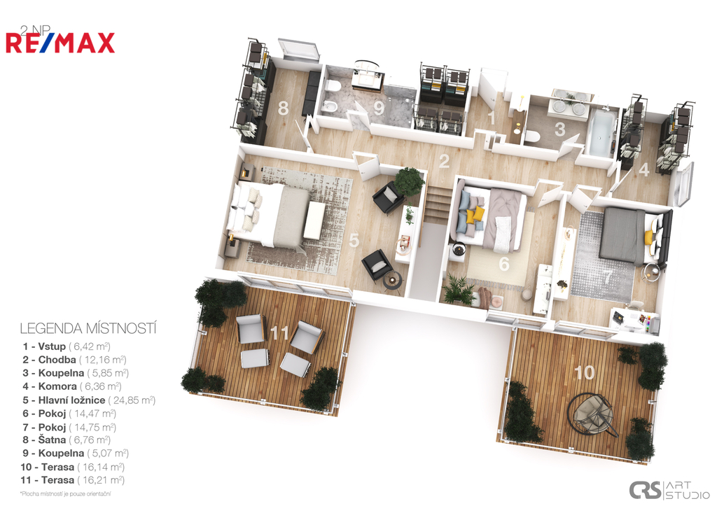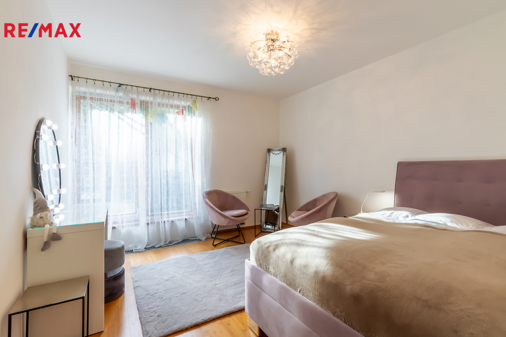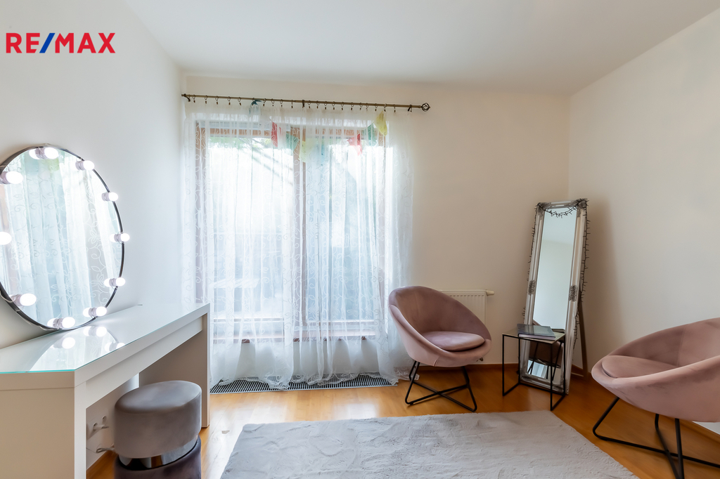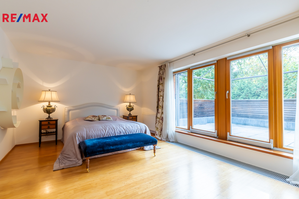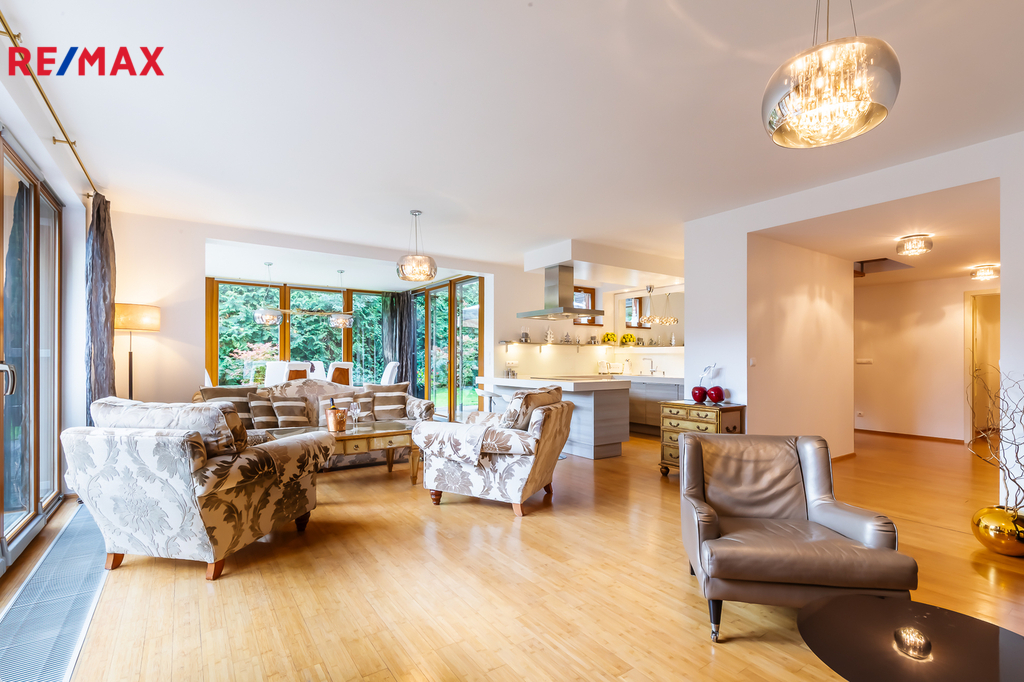 Nabízíme k prodeji dvoupodlažní řadový dum o podlahové ploše 232 m² v žádané lokalitě Praha 5 – Košíře. Moderní ekologický projekt Arboreum od renomovaného architekta Petra Suskeho, kde je kladen velký důraz na přírodní materiály, dřevěné obklady fasád a zelené střechy. Bydlení v tomto projektu poskytuje absolutní klid, čistý vzduch a zároveň se nachází v blízkosti veškeré občanské vybavenosti. K užitné ploše (232 m²) dále náleží: - 3 terasy o celkové výměře 50 m², - sportovní zóna o rozloze 80 m², - pozemek cca 100 m², - dvě parkovací stání v uzavřených podzemních garážích, - dva sklepy o celkové ploše 14 m². Je zde navíc možnost vybudovat další místnost, saunu, bazén nebo zimní zahradu, případně rozšířit obytný prostor o dalších přibližně 60 m². Také je možná instalace solárních panelů a nabíjecí stanice pro elektromobil. Horní patro je rozděleno na dětskou a rodičovskou část. Každá z nich je oddělena chodbou a má vlastní koupelnu, šatnu i terasu, což zaručuje naprosté soukromí pro všechny členy rodiny. Hned u vstupu do domu se nachází praktická šatna. V přízemí najdete prostorný obývací pokoj s krbem na dřevo, ideální pro rodinná posezení či oslavy. Součástí obytné části je designová kuchyň značky Poggenpohl, vybavená veškerými vestavěnými spotřebiči. Velká francouzská okna zajišťují dostatek denního světla a dodávají interiéru vzdušnost a eleganci. Vedle obývací části se nachází další prostorný pokoj, který současní majitelé využívají jako tělocvičnu; za ní se pak nachází pokoj pro hosty. V přízemí je dále k dispozici koupelna, prádelna a technické zázemí, kde jsou umístěny mrazáky, lednice a úložné prostory pro suché potraviny. Díky tomu zůstává v kuchyni čistý a otevřený prostor, zatímco vše potřebné máte jen pár kroků vedle.. Z obou místností je přímý vstup na zahradu, kde rostou vzrostlé túje o výšce přibližně 7 metrů, které poskytují maximální soukromí. Na zahradě se dále nachází terasa s posezením a grilovací zónou, ideální pro letní večery. Veškerá sanita značky Villeroy & Boch je zárukou kvality a dlouhé životnosti. V celém domě jsou položeny kvalitní bambusové parkety. Díky jihovýchodní orientaci je v interiéru po celý den dostatek přirozeného světla. Dům se nachází ve vilové čtvrti Košíře, obklopené zelení, v blízkosti parků Cibulka a Vidoule – ideální pro procházky i sportovní aktivity. Na Anděl nebo Butovice, kde se nachází kompletní občanská vybavenost, se autem dostanete za 10 minut. Německá škola je rovněž vzdálena pouhých 10 minut jízdy, letiště 15 minut autem. Nejbližší mateřskou a základní školu najdete jen 200 metrů od domu. Zastávka autobusu Průchova je vzdálena 2 minuty chůze, vlaková stanice Cibulka přibližně 10 minut pěšky. V okolí jsou kavárny, restaurace, obchody, školky, školy i různá sportoviště (tenis, golf apod.). Jedná se o jedinečnou nabídku v této lokalitě, kde již není možné postavit podobný dům. Rádi vám o této nemovitosti povíme více při osobní schůzce a zajistíme prohlídku.