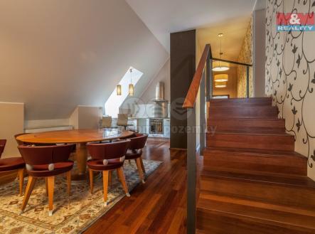 Nabízíme k prodeji vyjímečnou nemovitost v Praze 5 v těsné blízkosti nákupního centra Anděl. V minulosti sloužila jako sídlo firmy. Nemovitost původně patřila baronce Ringhoffer, manželce známého majitele strojírenského podniku v Praze.V roce 2007 objekt kompletně zrekonstruován a přestavěn na kanceláře s bytem a garáží pro majitele. V přízemí se nachází okázalá vstupní hala, recepce, 4 kanceláře, kuchyňka, sociální zařízení, místnost pro servery, úklidová místnost. Do patra se vchází po širokém dřevěném schodišti. Nachází se zde galerie, hlavní ředitelská kancelář, jednací místnost, 5 kanceláří, kuchyňka a sociální zařízení. V podkroví byl vybudován pohodlný komfortní byt dispozičně upraven na obývací pokoj spojený s kuchyní, 2 ložnice, 2 koupelny a 2 toalety. Vstup je umožněn po schodišti. Celý objekt chrání bezpečnostní systém. Parkovací místa jsou před budovou. Bližší informace žádejte u makléře.