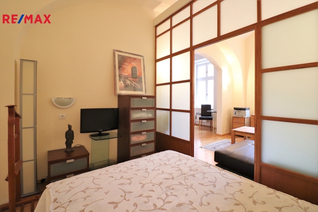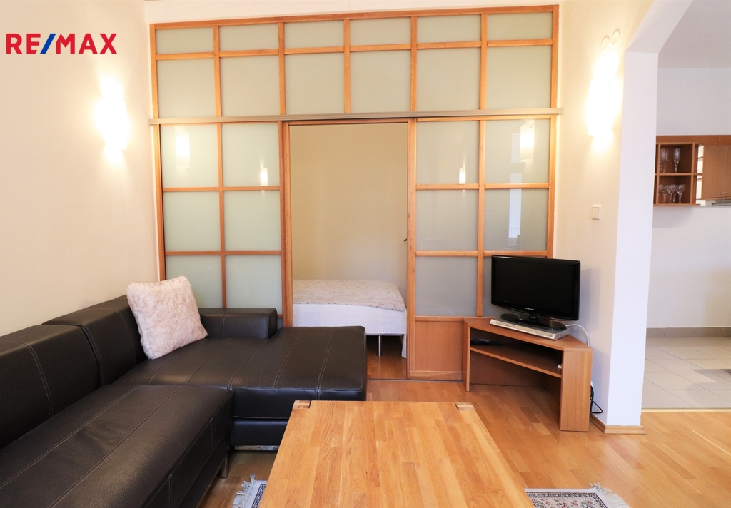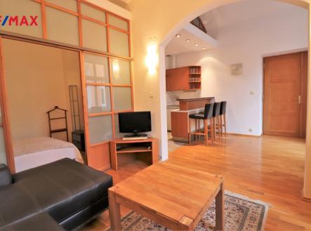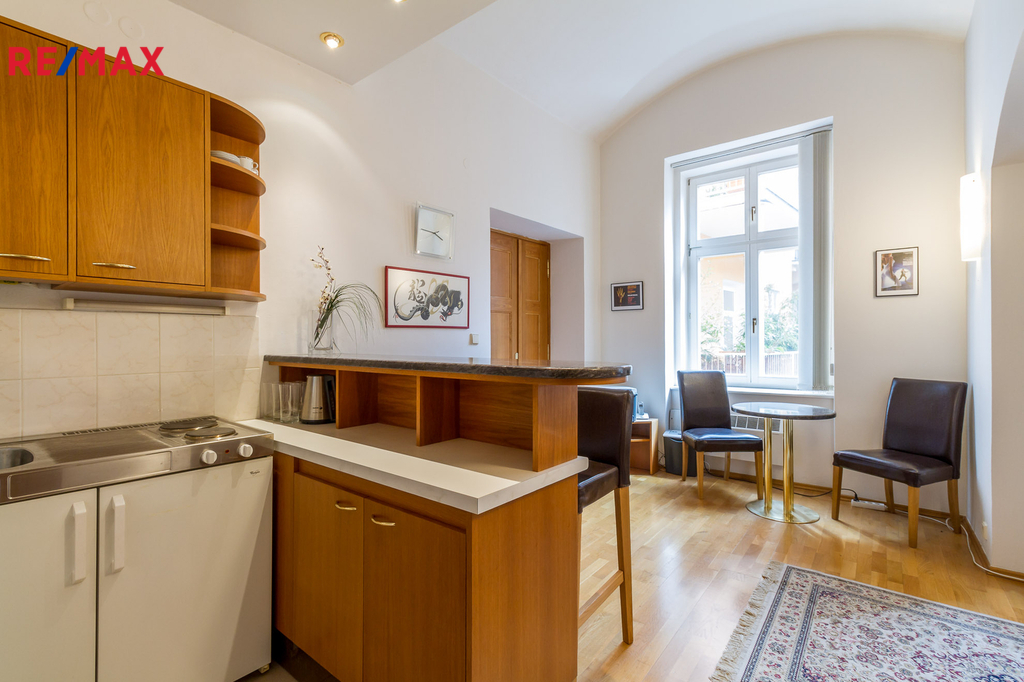 Exkluzivně nabízíme krásný, velmi světlý družstevní byt 2+kk o výměře 42 m2, který se nachází ve třetím nadzemním podlaží zrekonstruovaného cihlového domu s výtahem. Dobře dispozičně řešený byt nabízí vstupní předsíň, kuchyňský kout s barovým pultem a prostorem na jídelní stůl, koupelnu se sprchovým koutem, samostatné WC s umyvadlem, obývací pokoj a ložnici, která je umístěna za posuvnou stěnou. Obývací část je propojena s jídelnou a kuchyňským koutem a díky vysokým klenbovým stropům působí velmi vzdušně. Orientace bytu je na východní stranu do klidné zelené, architektem vytvořené, zahrady ve dvoře domu. Na zahradě je umístěný zastřešený altán s posezením, které lze využívat k relaxaci a odpočinku. Byt je vybaven kuchyňskou linkou, ledničkou, úložnými prostory v předsíni, dvoulůžkem, sedací soupravou a dalším zařízením. Vybavení bytu může v případě zájmu v bytě zůstat. Vstupní dveře jsou bezpečnostní. Platí se zde velice nízké měsíční poplatky, a to 2070,- Kč měsíčně + spotřeba elektřiny a plynu. Družstvo má vysoké roční příjmu z pronájmu nebytových prostor v suterénu domu. Dům je ve výborném stavu a jeho umístění je jedinečné, jen pár kroků od Národního divadla, Staroměstského a Václavského náměstí. Nabídka je vhodná pro bydlení na prestižní adrese nebo jako výborná investice s možností následného dlouhodobého či krátkodobého podnajímání.