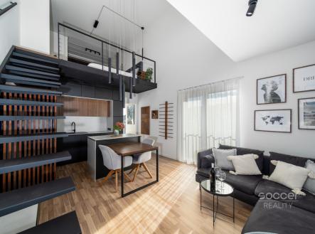 Soccer Reality vám zprostředkuje ke koupi moderní loftový byt 1+kk o ploše 36,1 m² s galerií 18,2 m² a balkonem 7,8 m², který se nachází v 5. NP rezidenčního projektu Bydlení na Krejcárku v Praze 9 – Libeň, ul. Novovysočanská. Byt je řešen s důrazem na design a praktičnost. Vysoké stropy dodávají prostoru vzdušnost, galerie vytváří útulnou ložnici, moderní kuchyňská linka na míru a elegantní schodiště podtrhují jedinečný styl loftového bydlení. Z obývacího pokoje je vstup na balkon s příjemným výhledem. Součástí je koupelna se sprchovým koutem a WC a prostorná předsíň. V bytě nainstalováno "inteligentní osvětlení" - T-led a "inteligentní vytápění" – Netatmo. K bytu je možné dokoupit sklepní kóji v 2. PP a garážové stání v 1. PP budovy, což zajišťuje plný komfort pro každodenní život. Projekt Bydlení na Krejcárku je vyhledávaný pro svou výbornou polohu – v blízkosti najdete park Krejcárek, cyklostezky, sportoviště, kavárny i obchody. Centrum Prahy je dostupné během pár minut autem nebo MHD. Tento loft je ideální volbou pro jednotlivce nebo pár, kteří hledají originální a stylové bydlení s veškerým zázemím v atraktivní lokalitě.