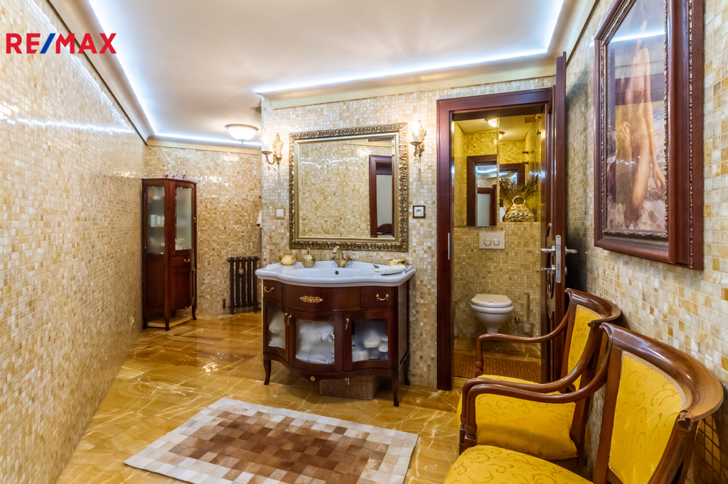 Nabízím k prodeji výjimečnou vilu, která spojuje elegantní architekturu, nadčasový klasický interiér, promyšlenou dispozici a jedinečné umístění v klidné a zelené části Prahy - Praha 10 Benice. Tato nemovitost je ideální volbou pro klienty, kteří hledají styl, komfort, soukromí a zároveň výbornou dostupnost do centra města i kompletní občanskou vybavenost. Interiér a atmosféra: Vila je laděna do klasického, reprezentativního stylu s důrazem na detail a kvalitu provedení: - mramorové a dřevěné prvky, - kované detaily a křišťálové lustry, - nábytek na míru a teplá paleta použitých materiálů. Plně vybavená kuchyně se špičkovými spotřebiči navazuje na jídelní část a plynule přechází do prostorného obývacího pokoje. Odtud je přímý vstup do zimní zahrady a na slunnou terasu, obklopenou udržovanou zahradou s okrasnými dřevinami a relaxační zónou s venkovní vířivkou. Dispozice domu Suterén - výměra 79 m2: - prostorná fitness místnost - finská sauna a turecká sauna - sprchový kout, samostatná toaleta - relaxační místnost 1. nadzemní podlaží - výměra 126 m2 + dvojgaráž 41 m2 + zimní zahrada 52 m2 : - plně vybavená kuchyně s jídelnou - prostorný obývací pokoj - vstup do zimní zahrady a na terasu - pracovna (možno využít jako pokoj pro hosty) - samostatná toaleta 2. nadzemní podlaží - výměra 150 m2: - celkem tři ložnice, každá se vstupem na balkon - hlavní ložnice s vlastní šatnou - dvě koupelny: jedna se sprchovým koutem, druhá s vanou a oknem - pracovna - samostatná prostorná šatna Udržovaná zahrada s prvky krajinářského designu nabízí maximální soukromí i prostor pro odpočinek. Na pozemku se nachází: - venkovní vířivka, - terasa pro grilování a letní posezení, - garáž pro dvě auta a parkování pro několik vozidel, - automatická vrata, kamerový systém. Benice patří mezi vyhledávané rezidenční lokality s nízkou zástavbou, rodinnou atmosférou a vysokou mírou bezpečí. Do centra Prahy se dostanete přibližně za 25 minut. V blízkosti naleznete: - Park Holiday Hotel & Resort – fitness, wellness, tenisové kurty, restaurace - Aquapalace Čestlice – největší aquapark ve střední Evropě - Obchodní zóna Čestlice – Albert, Makro, Bauhaus a další - školy, školky a mezinárodní školy v dostupné vzdálenosti - rychlé napojení na dálnici D1 Ráda vám o této nemovitosti povím více při osobní schůzce a zajistím prohlídku.