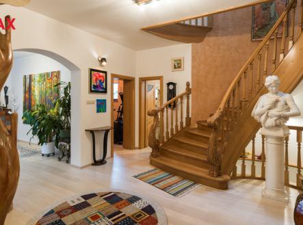 Exkluzivní rodinná vila v prestižní části Prahy – Horní Počernice, ul. Markupova V zastoupení majitele nabízíme k prodeji výjimečný, samostatně stojící rodinný dům v jedné z nejžádanějších částí Horních Počernic, v klidné ulici Markupova. Tento zděný, třípodlažní dům byl navržen s důrazem na maximální komfort, nadčasový design a soukromí. Na pozemku o rozloze 853 m² nabízí celkovou užitnou plochu 328 m² a zastavěnou plochu 193 m², čímž poskytuje velkorysý prostor i pro náročné majitele. Interiér domu se nachází v téměř novém stavu a je proveden ve vysokém standardu. Podlahové vytápění v kombinaci s tepelným čerpadlem zajišťuje nízké provozní náklady a celoročně příjemný tepelný komfort. Dominantou obytného prostoru je krbová vložka s třístranným sklem, která vytváří jedinečnou atmosféru domova. Díky velkoformátovým oknům je celý interiér krásně prosvětlen a nabízí ničím nerušený výhled do zahrady. V patře se nachází tři ložnice, které lze flexibilně upravit dle aktuálních potřeb – ať už jako dětské pokoje, pracovna nebo pokoj pro hosty. V přízemí naleznete prostorný obývací pokoj plynule navazující na kuchyň a jídelní část se vstupem na terasu s novou pergolou. Součástí domu je také vlastní wellness zóna se saunou a posilovnou. V suterénu se nachází praktická prádelna, do které vede chytrý shoz prádla jak z přízemí, tak z patra. Použité materiály podtrhují celkový luxusní charakter nemovitosti – od žulových parapetů přes dřevěné podlahy až po prémiové vybavení kuchyně a koupelen. Zahrada je pečlivě upravena do tří úrovní a doplněna vzrostlou zelení, která zajišťuje naprosté soukromí a klid. Vkusné chodníky ze skládané žulové dlažby vedou až k pískovcovému oplocení s kovanými prvky, které dodávají celé nemovitosti reprezentativní vzhled. Součástí je také vrtaná studna s možností propojení na městský vodovod. Pergola, přístupná jak z obývacího pokoje, tak ze sauny, vytváří ideální prostor pro relaxaci i společenská setkání v soukromí vlastní zahrady. Velkou předností je výborná dopravní dostupnost – v dosahu se nachází vlakové spojení, dálnice, silnice i MHD. Kompletní občanská vybavenost v kombinaci s klidným charakterem lokality nabízí ideální rovnováhu mezi městským komfortem a soukromím. Dům disponuje prostornou garáží pro dvě vozidla a dalším venkovním parkovacím stáním. Bezpečnost je zajištěna kamerovým systémem a alarmem se čtyřmi přístupovými klávesnicemi s možností napojení na PCO. Tato nemovitost je výjimečnou příležitostí pro ty, kteří hledají nadstandardní bydlení v tiché, prestižní lokalitě s výbornou dostupností do centra Prahy. Financování hypotečním úvěrem je samozřejmostí a s jeho vyřízením Vám rádi a bezplatně pomůžeme. Pro více informací či domluvení osobní prohlídky neváhejte zavolat makléři této nabídky.
