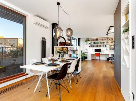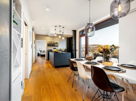 Prodej mezonetového bytu 3+kk s terasami, parkováním a výtahem – Praha 5, Košíře.