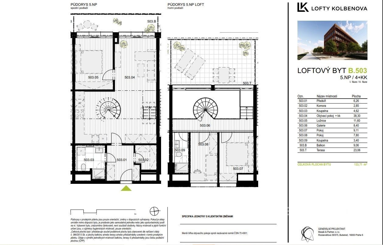 Nabízíme k prodeji moderní loftový byt 4+kk s terasou o rozloze 23 m2 a balkonem 9m2. Byt se nachází v nejvyšším patře budovy a to tedy v 5.NP, přičemž 4.NP a 5.NP jsou nově vystaveny. Byt je nadstandardně vybaven: klimatizací, rekuperací vzduchu, předokenními elektro žaluziemi. Objekt bývalé továrny dává bytům zcela jedinečnou kombinaci industriálního stylu a moderních prvků, kde se kombinuje dřevo s přiznaným betonem, což podtrhují velkoplošná hliníková okna. Fotky s nábytkem jsou pouze ilustrační a slouží pro lepší představu o bydlení. Tomuto projektu výrazně zvyšuje hodnotu jeho poloha, 300 m od stanice metra, díky tomu se můžete za 10 minut ocitnout v centru Prahy, nebo naopak, i v páteční dopravní špičce, být na dálnici D8, D10 a D11 na cestě do Krkonoš, Jizerských, Orlických nebo Krušných hor. Přímo naproti je komplex Pragovka, nabízející jak kulturní, sportovní tak kulinářské vyžití. Skoro za rohem se nacházejí obchodní centra jako Fénix a Galerie Harfa. Pro fanoušky sportovních zápasů a velkých koncertů ideální bydlení v blízkosti O2 arény a zároveň blízkosti přírody jako Klíčovské sady. Jedná se o již hotový byt v novém developerském projektu Lofty Kolbenova. Pro více informací o objektu a jiných dispozic bytů/ateliérů mě prosím kontaktujte.