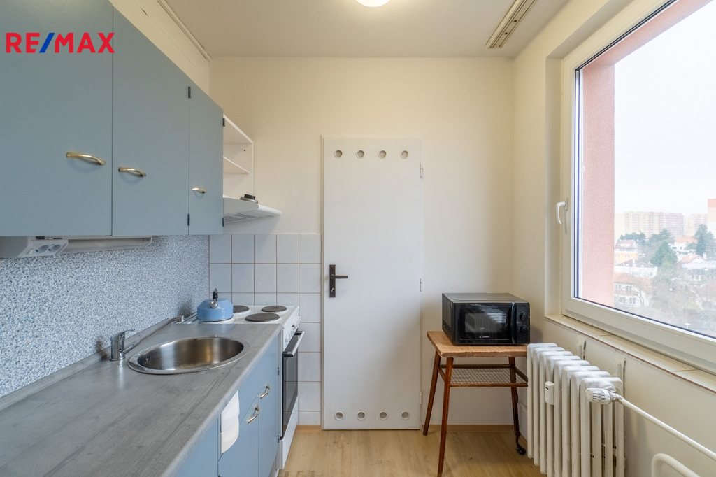 Prodej pěkného bytu 2+kk - 48,94 m² Kamýk Dnes Vám představuji pěkný byt 2+kk v osobním vlastnictví. Velikost 48,94 m² včetně 1,04 m² samostatné komory na patře je tak akorát pro pár nebo menší rodinu a energiemi se v zatepleném domě neplýtvá. Byt je v 5-tém patře v panelovém domě s dvěma moderními výtahy. K využití je obývací pokoj 16,66m² spojený s kuchyňským koutem 4,67m² a komorou (spíží) 1m², ložnice 12,10m², předsíň 7,76m², komora v předsíni 1,40m², koupelna a samostatné WC v šestém nadzemním podlaží s okny na východní stranu. Kuchyňské okno s výhledem do parku směřuje na severní stranu. Částečně zařízený interiér je ve výborném stavu. Je jen na Vás, jak se rozhodnete byt využít. Bydlet nebo pronajmout můžete ihned bez úprav. Rozvody elektřiny jsou s měděnými vodiči, stupačky byly vyměněny. Původní jádro bylo obloženo a zvedá tak komfort bydlení. Do bytu je zaveden optický kabel pro rychlý internet. Podívejte se na plánek, mě tato příležitost oslovila. Úložné prostory jsou řešeny také skříněmi v předsíni. Fotky napoví, 3D prezentace přizná výhody a zobrazí detaily stavu - klikněte na modrou ikonu 360 stupňů v obrázku. Hypotéku zajistíme, stačí mít jen něco do začátku. Před domem je přírodní Fitko pro všechny věkové kategorie a pěkné hřiště, blízko jsou nádherná dětské hřiště. V okolí je mnoho zeleně pro příjemné posezení s knížkou, jogging ve stínu stromů nebo procházky. Vás, které byt i lokalita oslovily, zvu na prohlídku po telefonické domluvě.