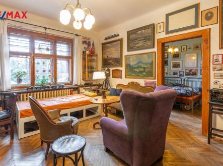 Nabízíme polovinu historického dvojdomu postaveného před sto lety podle projektu žáků Jana Kotěry, architektů Jindřicha Freiwalda a Jaroslava Böhma. Krajní dům řady dvojdomů s velkou zahradou se nachází uprostřed jedinečného jižního smíchovském svahu bývalých vinic mezi Strahovem a Klamovkou. V udržovaném domě s původními dispozicemi jsou dva byty 3+1 v přízemí a v podkroví, v původně sklepních místnostech je známý Jeep Bar elegantně propojený s venkovním posezením. Přístavbou lehkého přístřešku pak vznikl prostor pro parkování strojů a vozidel. Nechybí garáž s terasou přístupná přímo z ulice. Dům je napojen na všechny v místě obvyklé inženýrské sítě. V blízkosti je veškerá důležitá infrastruktura: jesle, školka, škola, vyhlášené parky Klamovka, Ladronka, Kinského zahrada. Tramvají nebo autobusem jste za patnáct minut na smíchovském Andělu, klidnou procházkou lze pak do třičtvrtě hodiny dojít na Petřín, Pražských Hrad nebo i na Kampu na Malé Straně.
