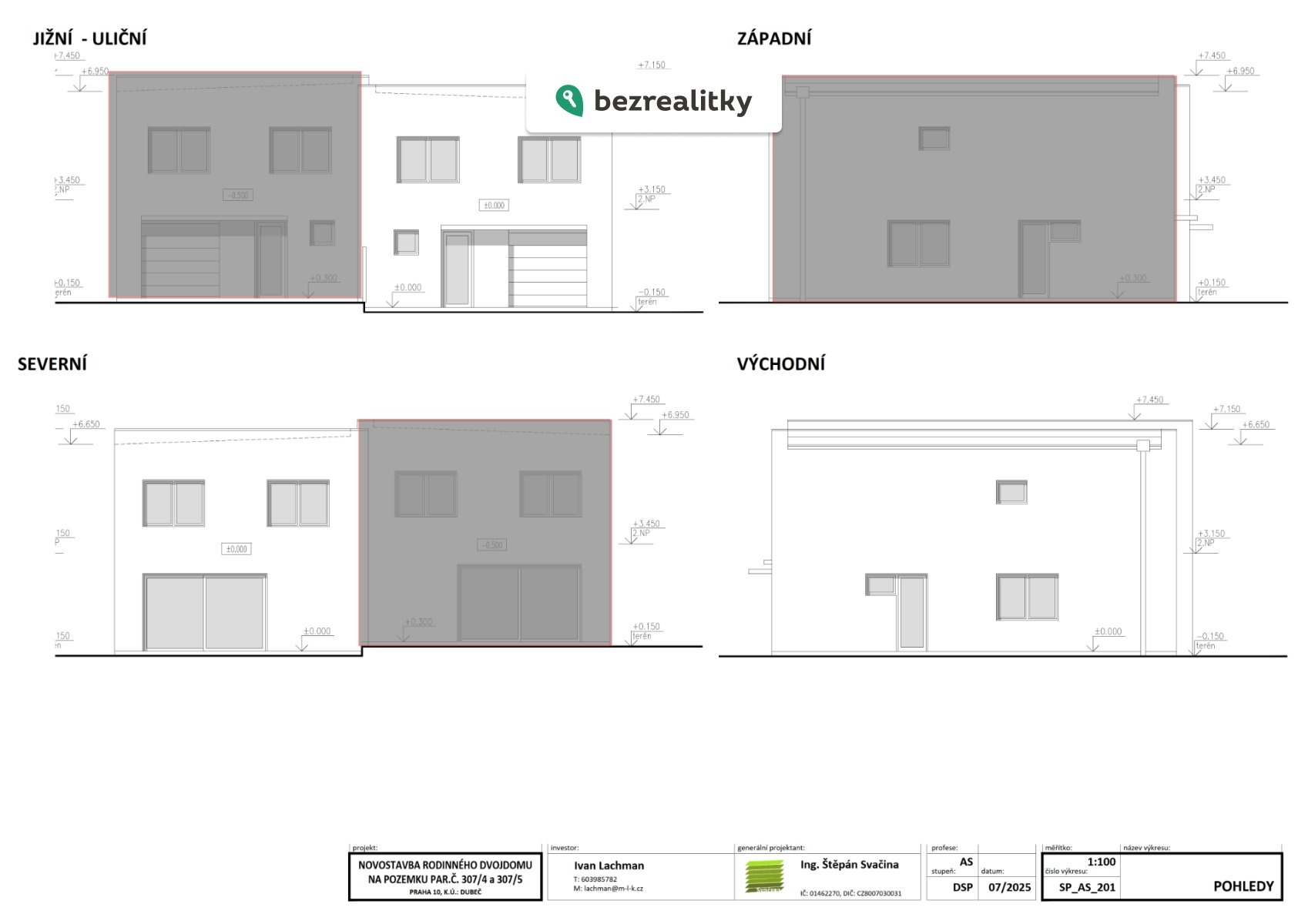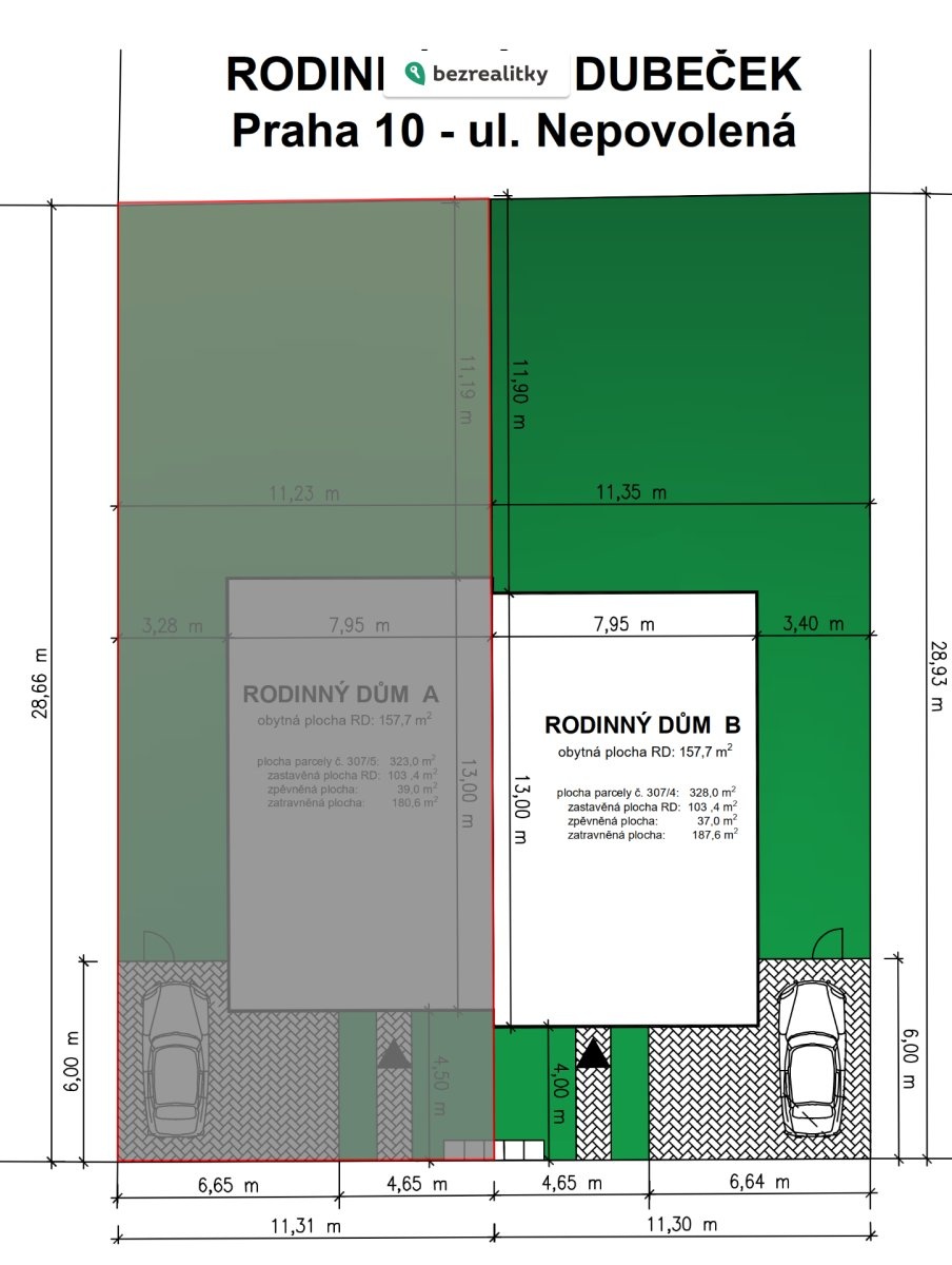 Nabízíme k prodeji STAVEBNÍ POZEMEK včetně STAVEBNÍHO POVOLENÍ ve stávající zástavbě městské části Praha 10 - Dubeč. Ideální pro ty, kteří chtějí stavět vlastní dům bez rizika zdlouhavého získávání stavebního povolení, případně pro ty jež hledají pouze stavební parcelu.. K prodeji nabízíme samostatně i druhý přiléhající pozemek p.č. 307/5 (323 m2, vč. Stavebního povolení) - k záměru lze přistoupit i jako k investici, kdy v jedné nemovitosti lze bydlet a druhou pronajímat či prodat. Při nastavení vzájemně vyhovujících časových a finančních mechanizmů je prodejní cena k jednání. Nabízený pozemek parcelní číslo 307/4 (k.ú. Dubeč) o rozloze 328 m2 představuje skvělou investiční příležitost pro bydlení s veškerým zázemím. Klíčovou výhodou je již zahrnuté STAVEBNÍ POVOLENÍ pro rodinný dům, což zjednodušuje a zrychluje proces výstavby. Dvoupodlažní rodinný dům je připojen na veřejné rozvody elektrické energie, vodovodu a kanalizace. Vytápění je zajištěno tepelným čerpadlem a podlahovým vytápěním. Výměna vzduchu je zajištěno rekuperační jednotkou vzduchu. Pozemek je situačně velmi příhodně umístěn s dobrou dostupností městské hromadné dopravy, autobusových linek i přilehlé silniční komunikace, což činí cestování a spojení s centrem Prahy velmi pohodlným. V přiléhající komunikaci jsou vedeny rozvody elektřiny, kanalizace, vodovodu, plynu a datové rozvody. Lokalita poskytuje klid a pohodu, kdy pozemek je umístěn v proluce stávající zástavby (nejedná se o "satelitní bydlení"), přičemž zachovává blízkost městské civilizace a všech důležitých služeb. Pokud hledáte pozemek s možností zahájení stavby na jaře příštího roku (cca 06/2026), tato nabídka je pro vás ideální volbou. V případě zájmu jsme schopni Vám rodinný dům i zrealizovat a ve vámi zvoleném standartu. Prohlídka parcely je možná po předchozí domluvě. Pro více informací o této nemovitosti nebo sjednání prohlídky nás prosím kontaktujte nebo vyplňte níže uvedený formulář, rádi Vám pomůžeme. Prosím zástupce realitních kanceláří, aby nás nekontaktovali s nabídkou svých služeb. Tato nemovitost je určena výhradně přímým zájemcům o koupi. Na inzerát můžete také reagovat přímo na webu Bezrealitky.