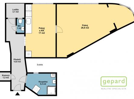 Společnost Gepard Reality nabízí ke koupi do osobního vlastnictví prostorný a velmi pěkně zrekonstruovaný byt o dispozici 2+kk v městské části Praha 8 – Libeň, v ulici U libeňského pivovaru - na klidném místě v zeleni u Rokytky a zároveň v blízkosti MHD. Byt se nachází ve 2. patře historického bytového domu. Celý dům prošel postupně rekonstrukcí: nový střešní plášť, fasáda (z vnitrobloku včetně zateplení), plastová okna, rozvody elektřiny a stoupačky. Plocha nabízené bytové jednotky je 64,00 m2, k bytu navíc přísluší lodžie (3,10 m2) a sklepní kóje (4,00 m2). Byt je nabízen včetně vybavení znázorněného na fotografiích: kuchyňská linka s el. troubou, indukční deskou, myčkou, lednicí s mrazákem, dřevěný rozkládací stůl + židle, předsíňová stěna atd. Lodžie a okna pokojů jsou orientována na sever a východ a nabízejí příjemný výhled do zeleně. V bytě je světlý rohový pokoj (26,80 m2) s výklenkem a velkými okny, pokoj s kuchyňským koutem (17,00 m2 - tento pokoj je průchozí), chodba (12,60 m2), koupelna (5,40 m2) se sprchovým koutem, WC (1,00 m2), komora (1,20 m2) a lodžie (přístupná z chodby bytu). Vytápění a ohřev vody (mimo kuchyň) je zajištěn plynovým kotlem, v kuchyni je průtokový ohřívač. Ve vnitrobloku je příjemná společná zahrada s možností posezení. Veškeré služby jsou k dispozici v blízkém okolí. Zastávka tramvaje je vzdálena asi 3 minuty chůze, zastávka metra B Palmovka je zhruba 10 minut pěšky. Obchody a restaurace jsou v okolí Palmovky. Přímo u domu vede údolím Rokytky cyklostezka z Hloubětína přes ZOO v Troji do Roztok u Prahy, dále je zde Park u Rokytky a dětské hřiště s lezeckou stěnou Rokytka. Byt je nyní pronajat za tržní nájemné na dobu určitou do 31.8.2026. Pro více informací či domluvení termínu prohlídky mne, prosím, kontaktujte.