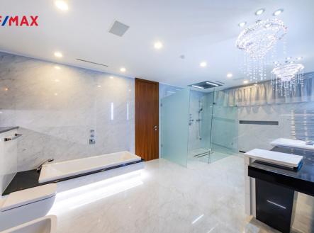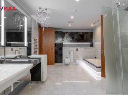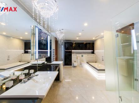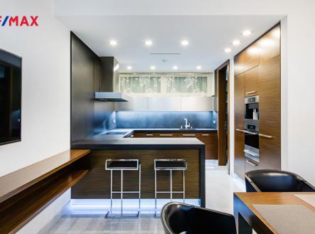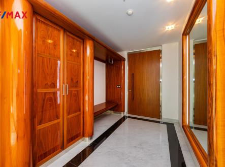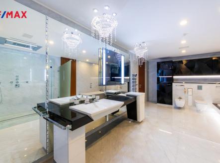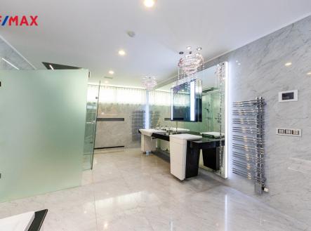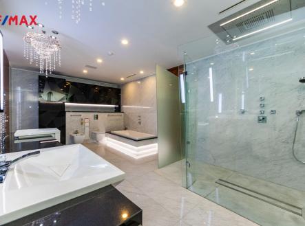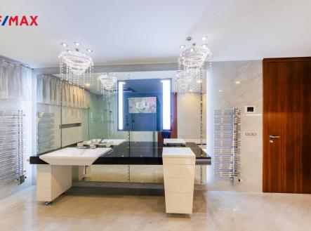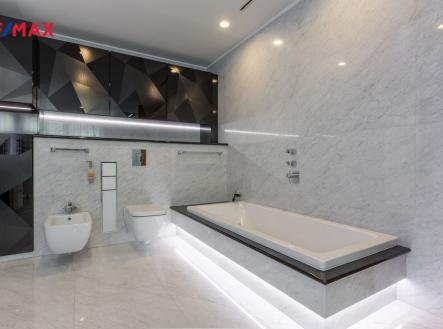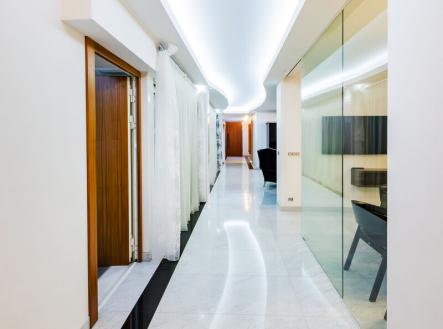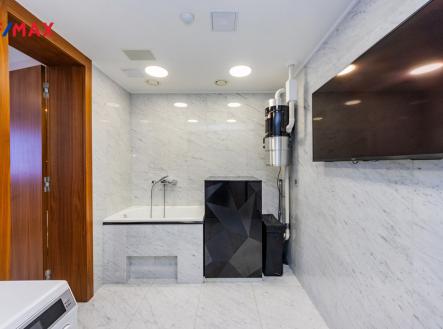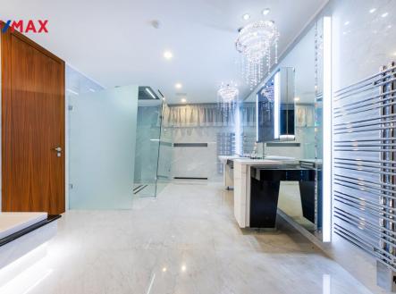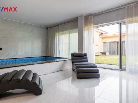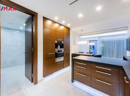 Dovoluji si Vám nabídnout prodej prostorného atypického rodinného domu na adrese Rotenská 540, Praha 9 - Kyje. Stavba z roku 2012 (s natočeným průběhem celé stavby) nabízí přes 360 m2 užitné plochy a vnitřním zatravněným atriem téměř 130 m2. Důmyslně promyšlené provedení a použití kvalitních materiálů nabízí mimořádný pocit bydlení. Interiér byl kompletně vyroben na zakázku a je vybaven moderními technologiemi – chytrá domácnost Crestron, centrální lux HUSKY, kamerový systém uvnitř atria včetně laserových závor kolem domu. Elektrické zámky + v každé místnosti, mimo garáže a šatny, jsou nainstalované TV. Bezpečnostní rolety, bezpečnostní ocelové vstupní dveře okna s trojsky a rámy Schüco. Kuchyňská linka, vybavena spotřebiči zn. Miele včetně elektricky výsuvných šuplíků, navazuje na obytný prostor, ve kterém je obývací stěna na dálkové ovládání, mramorový elektrický krb, který hřeje i praská. Dominantou ložnice je hvězdné nebe z optických vláken + koupelna Swarovski. Ve wellness části je bazén s tryskami a masážním vodopádem, sauna s dvojsystémem (pára a suchá), muzikoterapie, bar s lednicí (možnost nasvícení čtyřmi barvami). Podlahy, s podlahovým vytápěním, téměř v celém domě jsou z italského mramoru, v pracovně a navazující druhé kuchyni jsou podlahy dřevěné (ořech), v garážích a terase v atriu žulové. V atriu je venkovní kino a zavlažování trávníku je zajištěno kapilárními tryskami. Parkování je zajištěno ve dvou garážích, v nichž jedné z nich jsou vybudované odtoky vody pro mytí auta. Čerstvý vzduch zajišťuje rozvedená rekuperace s chladící jednotkou, topení kotlem Viessmann zajišťují 3 stometrové vrty tepelného čerpadla pro dům i pro bazén. Tento dům vyniká svou unikátností a luxusním charakterem, které osloví i ty nejnáročnější kupující. Pokud hledáte nemovitost, která splní všechna vaše očekávání a bude vám poskytovat jedinečný pocit exkluzivity a 100% soukromí, nemusíte hledat dál. Tato nemovitost je tím pravým místem pro váš životní styl. V případě zájmu o prohlídku nás neváhejte kontaktovat. Těším se na setkání s vámi a možnost vám představit tuto unikátní nemovitost osobně.