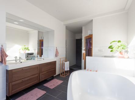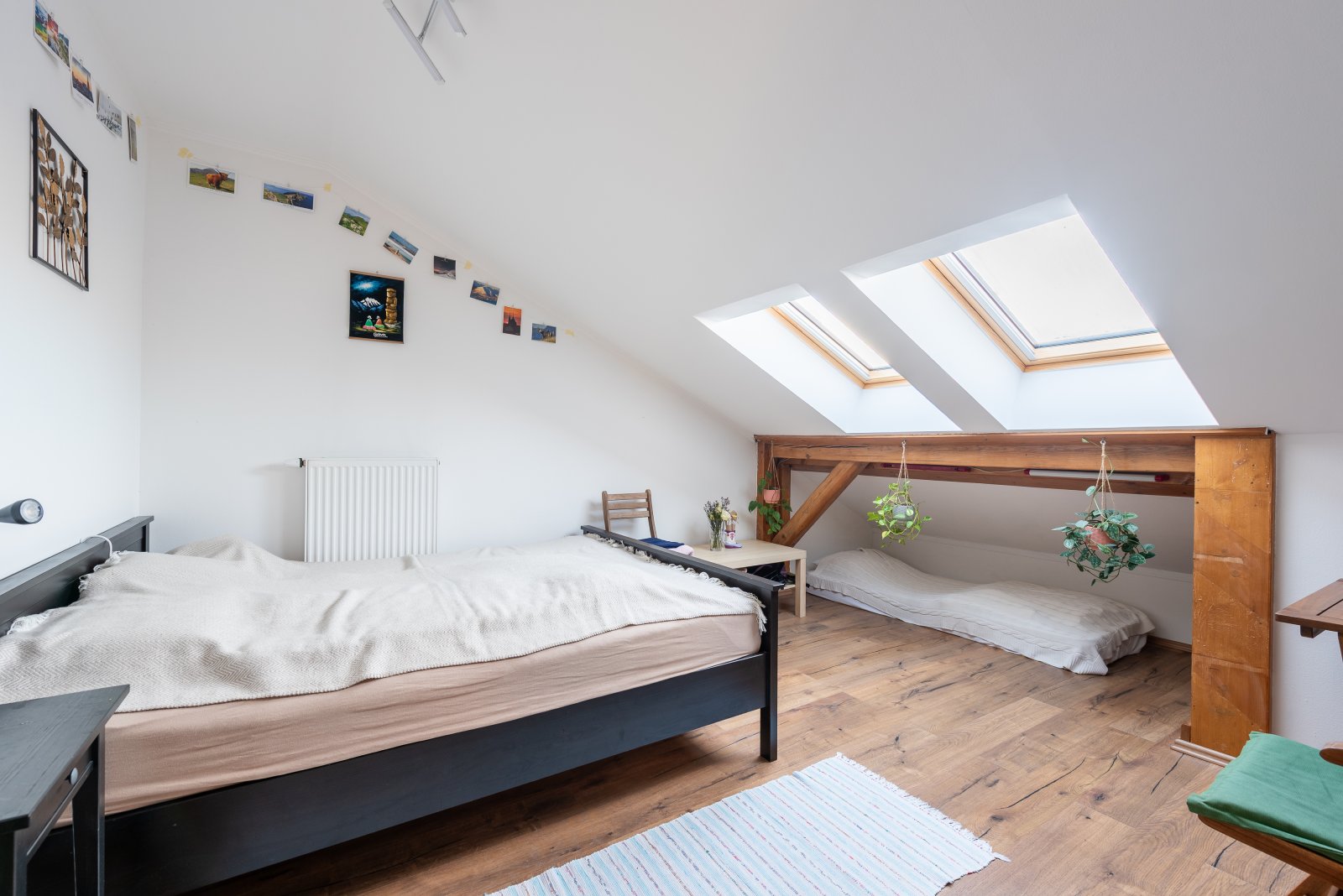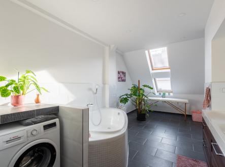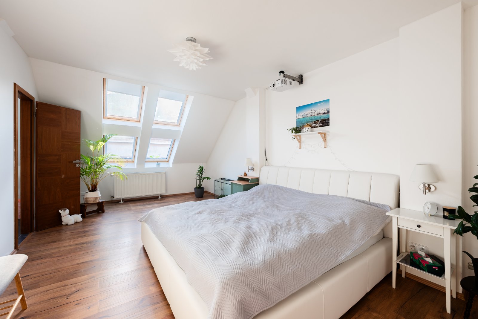 Představujeme Vám úžasný byt, který Vás nadchne už při prvním vkročení. Jedná se o slunečný a mimořádně prostorný mezonet, dispozičně koncipovaný jako 3+1 (původně řešený jako 4+1) o celkové užitné ploše 140,7m² (byt 129,3m², terasa 6,4m², sklep 5m²), nacházející se v klidné části Libně, jen pár minut chůze od metra Palmovka. Byt je nadstavbou z roku 1996, která v roce 2020 prošla kompletní a velmi kvalitní rekonstrukcí. Během ní byla pozměněna dispozice, vznikly nadstandardně řešené koupelny, praktické úložné prostory, moderní kuchyň a všechny místnosti byly osazeny klimatizací Daikin. Místo se našlo také na saunu. Byt nabízí promyšlený mix velkorysých otevřených ploch i útulných zákoutí. Pojďme se na něj podívat podrobněji. Na spodní úrovni se nachází velká vstupní hala, hlavní ložnice (22 m²) a opravdu výjimečná koupelna (21m2) s vanou pro dva, prostorným sprchovým koutem, dvojitým umyvadlem a vlastní infrasaunou. Příjemný dojem umocňují velká střešní okna, která poskytují dostatek denního světla. Na tomto podlaží je také velká vestavná skříň ve vstupní chodbě (23m2) a samostatná toaleta s plynovým kotlem. V horním patře se nachází obývací pokoj (22 m²), který díky svému členění může mj. částečně fungovat i jako domácí kancelář. Dále se v patře nachází moderní kuchyň s jídelním prostorem a přímým vstupem na terasu. Ta má příjemnou velikost, dostatek soukromí a krásný výhled. K dispozici je také zajímavě řešená menší ložnice/dětský pokoj (14m²). I zde v patře najdete plnohodnotnou koupelnu se sprchovým koutem a toaletou. K bytu náleží také sklep o velikosti 5 m². V nejvyšším patře domu budete bydlet v naprostém klidu, s krásným výhledem a příjemnou atmosférou, kterou dotvářejí velká dřevěná střešní okna i klimatizace zajišťující komfort v každém ročním období. Teplo i teplou vodu zajišťuje vlastní plynový kotel. Důležitou informací pro bydlení v posledním patře je také to, že střecha prošla v roce 2022 kompletní rekonstrukcí. Dům slušně hospodaří, SVJ nemá žádné finanční závazky, ve FO jsou poměrně vysoká aktiva. Měsíční poplatky činí 5.710.-Kč (vč. FO 3.870,-Kč, vč. Vodného a stočného 1.226,-Kč). Okolí domu je klidné a zelené. V těsné blízkosti najdete Thomayerovy sady, příjemné trasy pro procházky i sport, a zároveň kompletní městskou vybavenost. Několik páteřních tramvajových linek, autobusové spoje a metro B Palmovka jsou v docházkové vzdálenosti. Palmovka je místem s bohatou historií i velkou budoucností. Jedná se o strategickou dopravní polohu Prahy 8, kde jsou dlouhodobé plány na modernizaci a celkovou revitalizaci území. To přináší této oblasti významný investiční potenciál a předpoklad růstu hodnoty nemovitostí v čase. Energetický štítek není v tuto chvíli k dispozici, SVJ má v plánu jej nechat vypracovat. Garantujeme naprosto harmonický převod vlastnického práva k nemovitosti (na bytové jednotce není žádná forma vlastnického omezení), stejně tak bezpečný převod kupní ceny – výběr schovatele dle preference klienta.