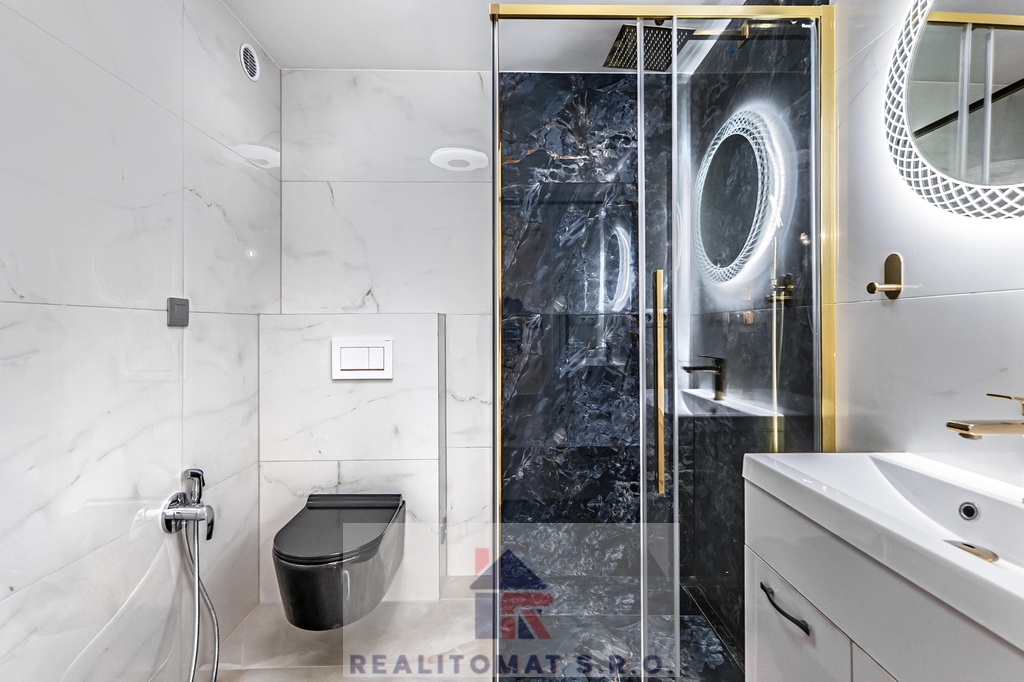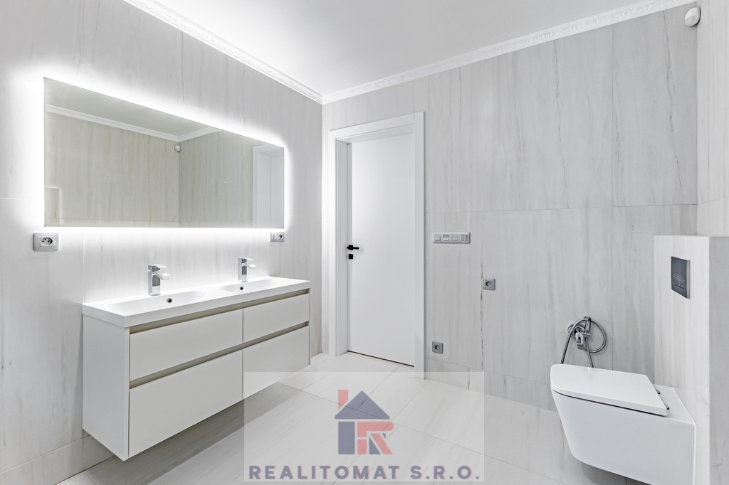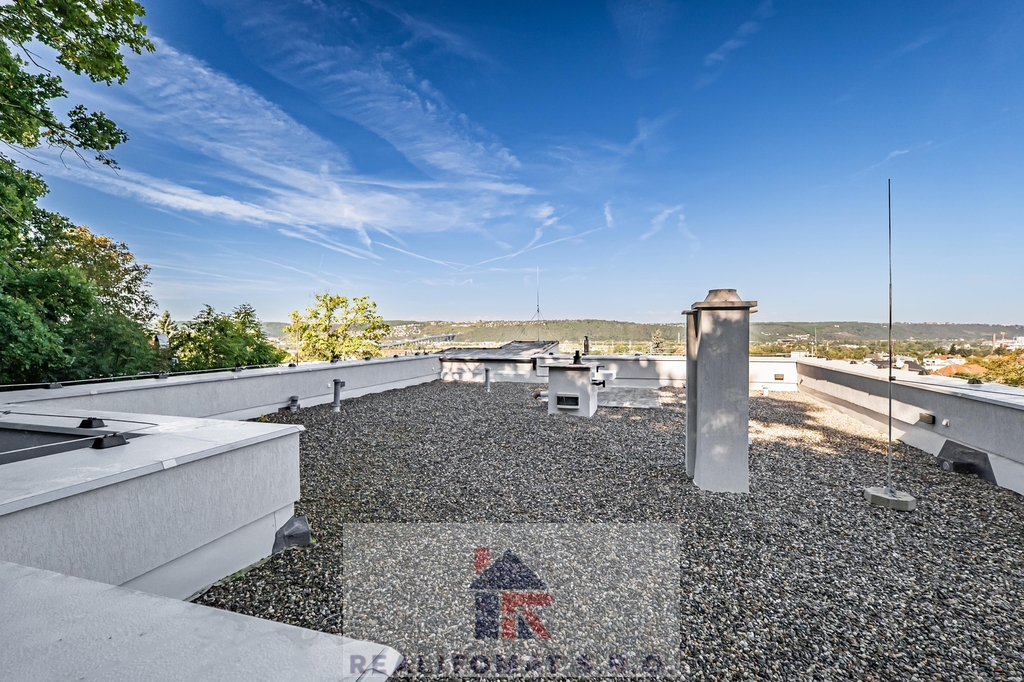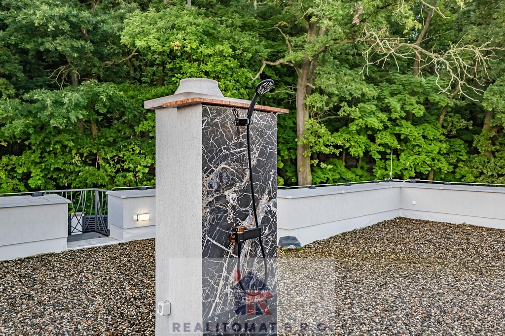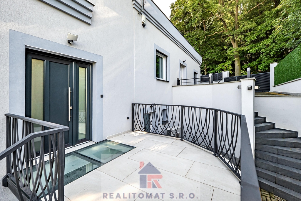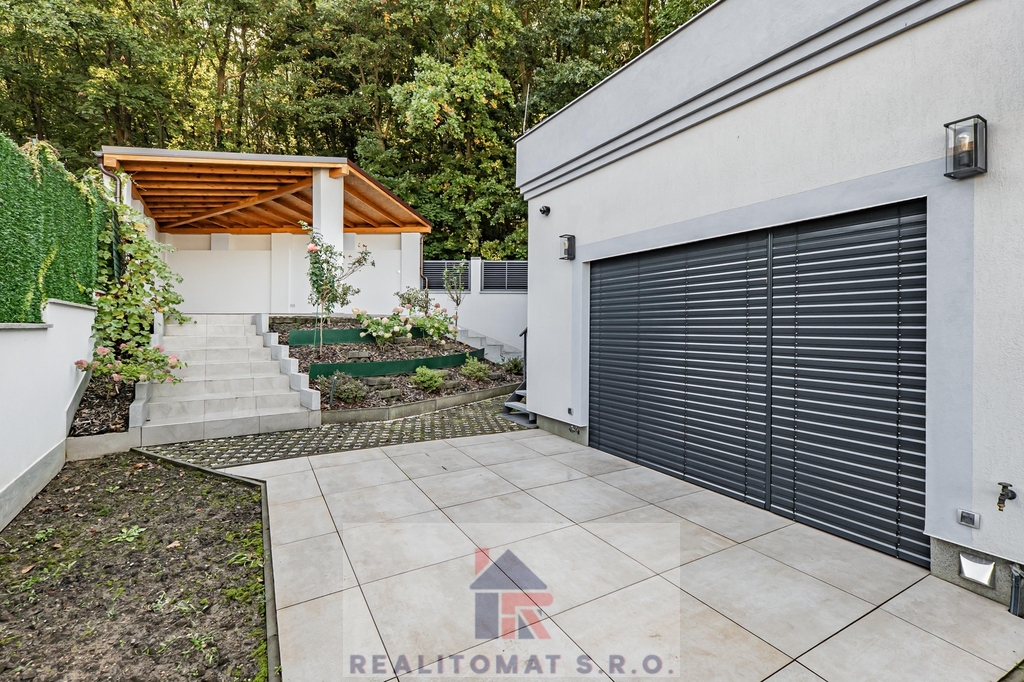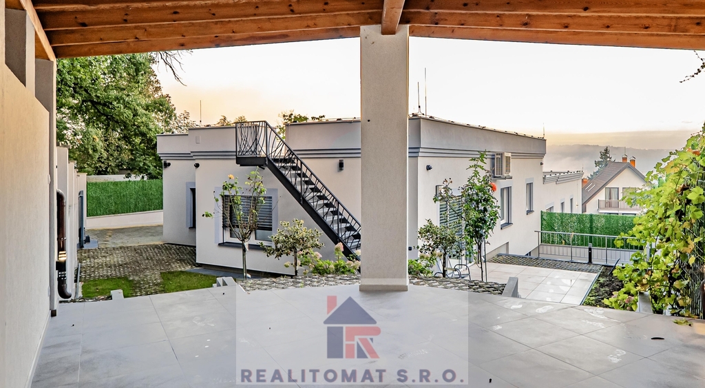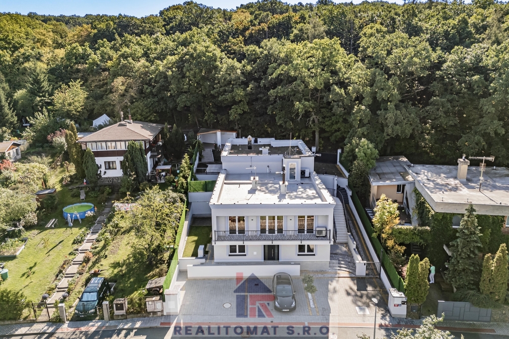 Rezidence pod lesem - Praha - Komořany. Nabízíme exkluzivně k prodeji rezidenční komplex dvou domů, které jsou rozděleny na katastru nemovitostí na tři samostatné jednotky o dispozici 4kk, 4kk a 5kk. Tento rezidenční komplex je ideální pro rodinné či firemní sídlo. Nemovitost se nachází na výjimečném místě v sousedství přírodního parku - Modřanská rokle - Cholupice s jedinečným výhledem na Prahu. Přední dům je rozdělen na dvě bytové jednotky 4+kk. První byt 4kk v přízemí disponuje vlastní soukromou předzahrádkou. Druhý byt 4kk má vlastní střešní terasu. Samotný dům v zadní části má také vlastní střešní terasu. Jednotlivé byty mají vlastní parkovací stání; celkem je k dispozici šest parkovacích míst před domem a jedno parkovací místo v zadní části rezidence s vlastním výjezdem. Příprava na nabíjecí stanice pro elektromobily. Rezidence je nízkoenergetická novostavba postavena majitelem stavební firmy v té nejvyšší kvalitě. Každá jednotka je vybavena vlastním tepelným čerpadlem Vaillant s podlahovým vytápěním. Pro maximální komfort je dům vybaven klimatizacemi Panasonic. Součástí je chytrá domácnost, venkovní rolety - žaluzie, alarm, magnetické dovírání interiérových dveří, ozvučení koupelny, atd. Na střeše rezidence jsou připravené terasy pro instalaci vířivek a saun. V zadní části domu je zastřešená pergola s přípravou na kuchyňskou linku. Pro více informací mě kontaktujte nebo navštivte naše webové stránky.