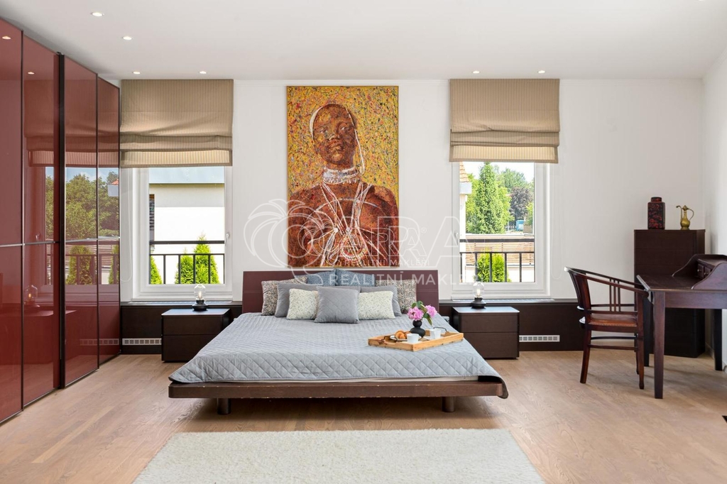 Dům s příběhem, vila s energií Nabízíme k prodeji výjimečnou vilu v pražských Kolovratech – domov, který byl postaven s láskou, pečlivostí a poctivostí. Majitelé do něj vložili nejen kvalitní materiály a precizní práci, ale i vlastní energii, která je v domě cítit od prvního okamžiku. Na ploše téměř 495 m² a 620 m² včetně teras a krytých částí se otevírá promyšlený prostor, kde každý detail má své místo. Velkorysý obývací pokoj s kuchyní o rozloze téměř 100 m² je srdcem domu, kde se přirozeně setkává rodina i přátelé. Dům nabízí 7 ložnic, 5 koupelen a 3 terasy, což poskytuje dostatek soukromí i společného prostoru pro všechny generace. Vila stojí na pozemku obklopeném zelení, na dosah lesa, kde vládne klid a harmonie. Je to prostředí, kde si člověk odpočine, načerpá sílu a přitom má město na dosah ruky. Kvalita stavby, atmosféra klidu a dobrá energie tohoto domu z něj činí místo, kde se dobře žije – a které si své nové majitele přitáhne samo. Pokud hledáte víc než jen nemovitost, pokud hledáte opravdový domov, tato vila je tou pravou volbou. Jaroslav Beránek A Home with a Story, a Villa with Energy We are pleased to present an exceptional villa in Prague’s Kolovraty – a home built with love, care, and integrity. The owners poured not only high-quality materials and precise craftsmanship into it, but also their own positive energy, which you can feel the moment you walk in. On nearly 495 m² of living space and a total of 620 m² including terraces and covered areas, the villa reveals a thoughtfully designed layout where every detail has its place. The impressive 100 m² living room with kitchen is the heart of the home, a natural gathering place for family and friends. With 7 bedrooms, 5 bathrooms, and 3 terraces, the house provides both ample privacy and generous shared spaces for all generations. Set on a private plot right by the forest, the villa radiates peace and harmony – a setting where one can truly relax, recharge, and still enjoy the convenience of being close to the city. The quality of construction, the sense of calm, and the positive energy embedded in this house make it more than just a property – it is a place where life flourishes. If you are looking for more than a house, if you are seeking a true home, this villa is the right choice. Jaroslav Beránek