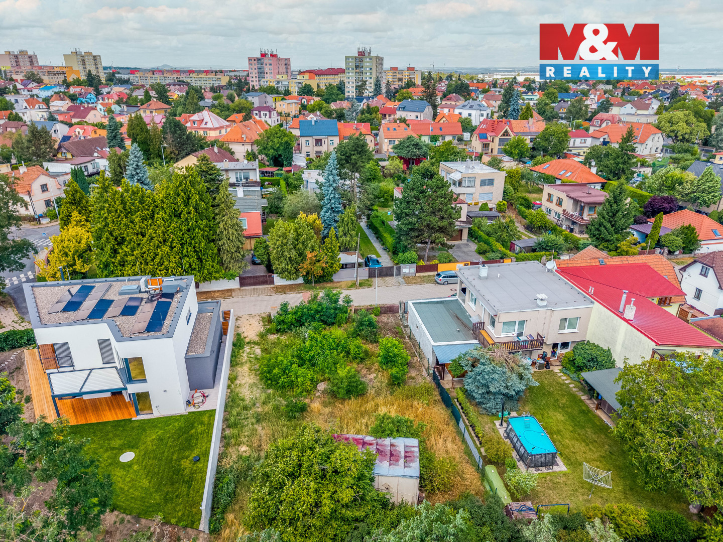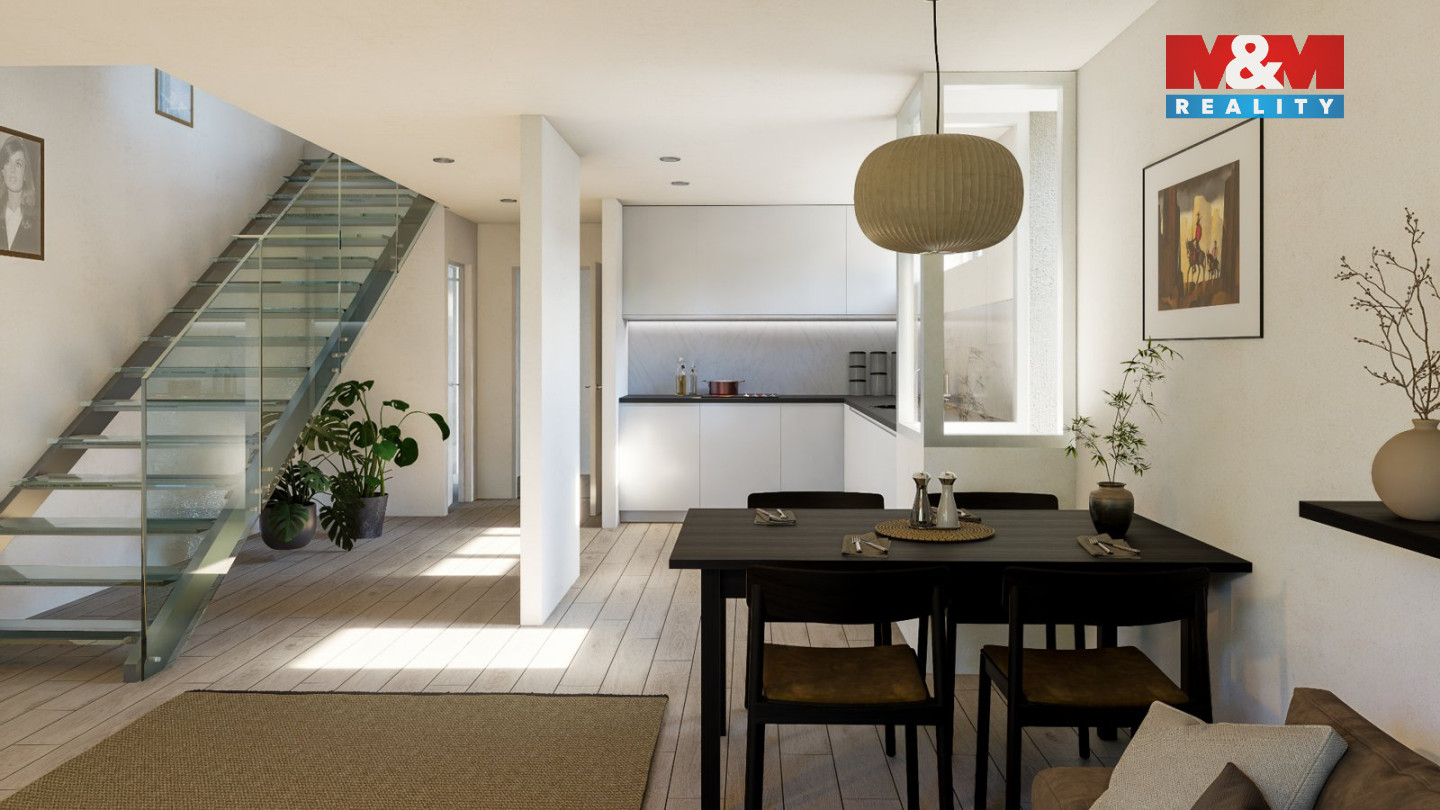 Nabízíme k prodeji novostavbu moderního dvojdomu v klidné části Prahy 9 – Horní Počernice. Dům o užitné ploše 130 m² je dispozičně řešen jako 4+kk ve třech podlažích. V přízemí se nachází prostorný obývací pokoj s kuchyňským koutem a jídelnou, vstupní chodba, technická místnost a toaleta. V patře jsou dvě ložnice, koupelna s WC a šatna či pracovna. V posledním podlaží je ložnice s vlastní koupelnou a vstupem na velkou terasu s výhledem do zeleně. K domu náleží zahrada orientovaná do vnitrobloku a parkovací stání na vlastním pozemku. Na pozemek navazuje skalnatý převis, který znemožňuje jakoukoliv další zástavbu sousedící se zahradou. Stavba je zděná se železobetonovými stropy, plochou střechou s krytinou z titanzinku. Nemovitost je napojena na kompletní inženýrské sítě, vytápění i ohřev vody zajišťuje elektřina s možností doplnění fotovoltaiky. Lokalita nabízí výbornou dostupnost do centra Prahy i plnou občanskou vybavenost.