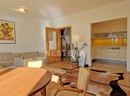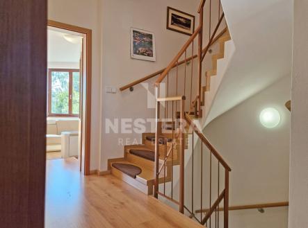 Nabízíme ke koupi prostorný řadový rodinný dům 5+kk, o celkové vnitřní ploše 202 m2 + 12,2 m2 terasa + 5 m2 balkon, nacházející se v klidné a zelené lokalitě Sobín, která je součástí městské části Praha 5 – Zličín. Dům disponuje zahradou orientovanou na západ, prostornou garáží pro dva automobily, dílnou a kompletním technickým zázemím. Tento dům představuje ideální kombinaci klidného bydlení s perfektní dostupností do centra Prahy. Dispozice: • 1NP: Zádveří, chodba se schodištěm, koupelna se sprchovým koutem, pracovna a kuchyňský kout otevřený do obývacího pokoje s přímým vstupem na terasu a zahradu. • 2NP: Tři ložnice, koupelna s vanou a toaletou a dále samostatné WC. • 1PP: Garáž pro dva automobily, dílna, sklad a kotelna. Z garáže lze vstoupit jak přímo do domu nebo na zahradu. Dům je napojen na rychlý internet. Vytápění a ohřev vody zajišťuje moderní plynový kondenzační kotel. Orientace východ–západ zajišťuje dostatek přirozeného světla po celý den. Lokalita a dopravní dostupnost: • V okolí je veškerá občanská vybavenost. Velkou výhodou je rychlá dostupnost letiště Václava Havla. Dům tedy bude vyhovovat i lidem, kteří jsou často na cestách. • V těsné blízkosti vede cyklostezka Praha – Hostivice – Červený dvůr – Beroun. • Nedaleká přírodní lokalita Hostivické rybníky nabízí krásné přírodní scenérie, procházky, běhání i prostor pro aktivní odpočinek v lese, mimo ruch velkoměsta. • Autobusová zastávka Blatnická je vzdálená 200 metrů, autobus č. 306 jezdí ve špičce každých 10 minut, na metro Zličín za 8 minut. • Pěšky na metro Zličín přibližně 25 minut. • Autem do obchodního centra Metropole Zličín cca 5 minut. • Spojení na Dejvickou / Motol: bus 306 + přestup na bus 180, celkový čas cca 40 minut. • V okolí je veškerá občanská vybavenost. Sobín je malebná čtvrť s vesnickým charakterem, obklopená zelení, a přesto perfektně dostupná. Dům je ideální volbou pro rodiny, které hledají klidné prostředí, aniž by se vzdaly pohodlí velkoměsta. TOP 3 nemovitosti: • Velká užitná plocha s množstvím úložných prostor. • Rychlé dopravní spojení na metro, do centra a na letiště. • Výhled do zeleně. Pro více informací kontaktujte tým NESTERA.