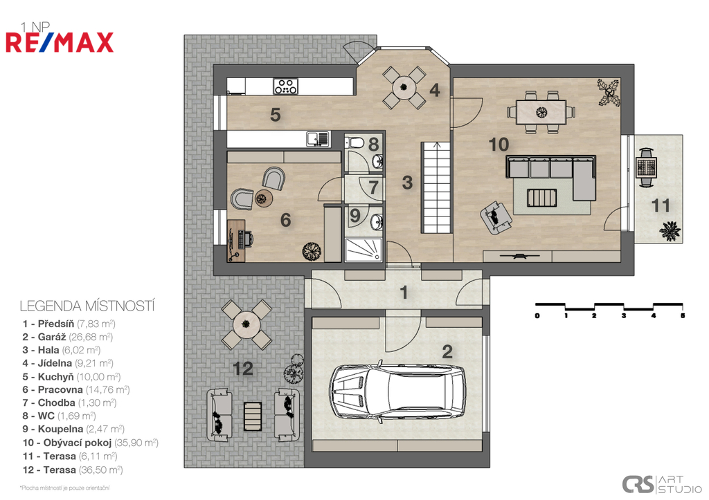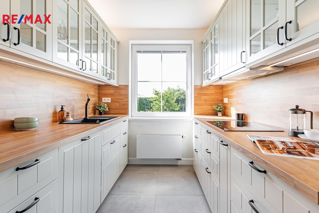 V exkluzivním zastoupení majitele Vám nabízím rodinný dům o dispozici 6+1 s užitnou plochou 284 m², situovaný v klidné a vyhledávané lokalitě městské části Prahy 6 – Přední Kopanina. Nemovitost se nachází ve slepé ulici K Tuchoměřicům, což zajišťuje minimální provoz u domu a maximální soukromí pro Vaší rodinu. Užitné plochy - Obytná plocha - 206 m² (přízemí + 1. patro) Dolní Terasy + balkon - 48,72 m² Garáž - 26,68 m² Podsklepení nemovitosti - 78,68 m² Celková vnitřní plocha nemovitosti - 311 m² Dům je postaven z cihel a v roce 2024 prošel částečnou, avšak zásadní rekonstrukcí. Po celém domě jsou nová trojskla, nově položené podlahy, dlažba v kuchyni, rekonstruovaná koupelna, a v přízemní části najdete také stylová kachlová kamna, která navozují příjemnou atmosféru. Dům je mimo garáž kompletně podsklepený - celkem 78,68 m² – skvělý prostor pro vybudování vlastního wellness, posilovny, pracovny, či jiných zařízení. Nachází se zde také větší místnost s vlastním odvětrávacím systémem. V přízemí nemovitosti se nachází místnosti pro využití během dne - pracovna, obývák, kuchyně, jídelna, či terasy. Horní část nemovitosti poté nabízí relaxační část, kde se nachází 2 dětské pokoje, 2 ložnice a šatny s koupelnou a WC. Pozemek poskytuje nejen garáž pro dvě vozidla, ale i další dvě venkovní parkovací místa přímo na pozemku. Zahrada (358 m²) kolem domu je ideální pro rodinné posezení, dětské hry i relaxaci po náročném dni. Velkou výhodou pozemku je absolutní soukromí, kolem celého domu vede 3 metry vysoký živý plot z tůjí. V přední části domu se nachází terasa o výměře 15 m², na kterou se dostanete přímo z obývacího pokoje. Zadní část domu Vám poskytne druhou terasu o výměře 20 m², ideální pro rodinné posezení či výřivku. Přední Kopanina - lokalita, která spojuje výbornou dostupnost s rodinným životem. Je také oblíbená pro svou přírodní atmosféru (pouhých 500m od domu je velký les) a sousedské prostředí, přitom však nabízí rychlý přístup do centra metropole – jen 20 minut jízdy autem. V případě MHD máte pouhých 100 m od domu zastávku autobusu (linka 907 a 161), který Vás doveze na blízké metro Bořislavka. Nejbližší obchod Lidl je vzdálen pouhých 5 minut jízdy, avšak přímo v obci najdete i menší samoobsluhu pro běžné nákupy. V blízkých Nebušicích se nachází Mezinárodní škola pro studium Vašich dětí. Dům je ideální volbou pro rodinu s dětmi, která hledá kombinaci soukromí, prostoru a dostupnosti. Ať už hledáte nový domov s možností odpočinku i aktivního využití prostoru, tato nemovitost nabízí přesně to. Pro více informací a domluvení prohlídky mě neváhejte kontaktovat.
