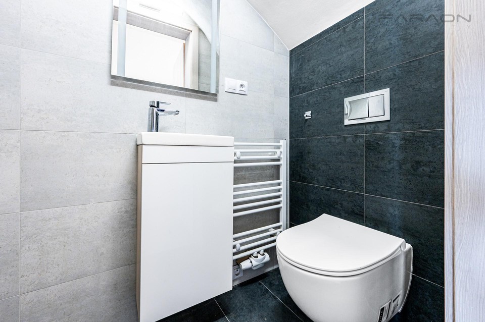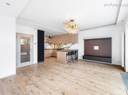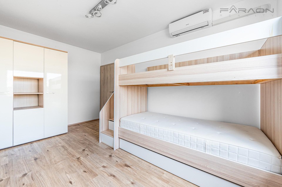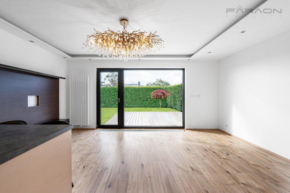 Prodej dvoupodlažního, zděného a architektonicky elegantně řešeného rodinného domu (2019) 4+kk s terasou a garáží (136 m²), nacházejícího se na slunném pozemku o velikosti 164 m² v atraktivní rezidenční lokalitě Praha 4 – Újezd u Průhonic. Dům je součástí moderního uzavřeného komplexu řadových domů Milíčovský les, který spojuje klidné rodinné bydlení s výbornou dostupností do centra Prahy. Stanice metra Opatov je vzdálena 5 minut jízdy, do centra se dostanete za 15 minut. V těsné blízkosti se nachází Milíčovský les, cyklostezky, rybníky a veškerá občanská vybavenost. Dispozice domu 4+kk zahrnuje dvě nadzemní podlaží. V přízemí se nachází prostorný obývací pokoj s jídelnou a přímým vstupem na terasu, plně vybavená kuchyň v lesklém béžovém designu se spotřebiči AEG a Miele, samostatná toaleta, technické zázemí s prostorem pro pračku a sušičku a vstup do garáže. V patře jsou tři pokoje – prostorná ložnice s vestavěnou skříní, pracovna/studentský pokoj s nábytkem na míru a dětský pokoj nebo pokoj pro hosty. Dále prostorná koupelna se sprchovým koutem, toaletou a samostatná šatna. Nemovitost je ve vynikajícím technickém stavu a prodává se tak, jak je prezentována na fotografiích – včetně veškerého vybavení a nábytku z fotodokumentace. Součástí standardu jsou venkovní elektrické žaluzie na všech oknech, plastová okna s izolačními trojskly, plynový kotel, kvalitní laminátové podlahy v dekoru dřeva, velkoformátové obklady a dlažby a sanita značek Laufen a Grohe. K dispozici je prostorná garáž a dvě parkovací stání před domem. Rezidenční areál nabízí dětské hřiště a dostatek parkovacích míst pro rezidenty i návštěvy. Lokalita představuje ideální rovnováhu mezi městským komfortem a klidným rodinným životem v přírodě. V blízkosti se nachází mateřská a základní škola Formanská, zdravotní středisko, sportovní areály i nákupní centra Westfield Chodov a OC Opatovská. Milíčovský les tak nabízí klidné, bezpečné a moderní bydlení s veškerým komfortem života v Praze.