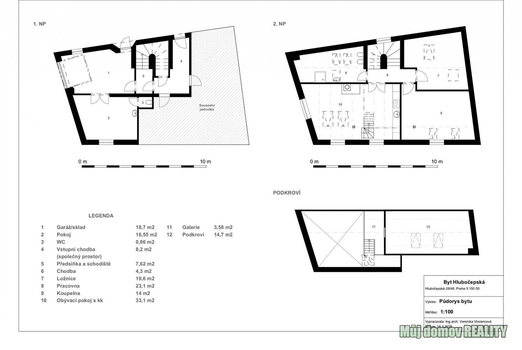 ## Prodej rodinného domu 6+kk, 156 m, pozemek 127 m Hlubočepská, Praha Hlubočepy. Nabízíme k prodeji **variabilní rodinný dům o užitné ploše 156 m**, situovaný v klidné části Praha 5 Hlubočepy. Nemovitost je ideální jak pro **vícegenerační bydlení**, tak jako **investiční příležitost**. Celková cena: **15 490 000 Kč + provize RK** ### Dispozice a využití Dům se skládá ze **3 jednotek**, přičemž předmětem prodeje jsou **2 jednotky (cca 79 % domu)**, které lze využívat samostatně nebo jako jeden celek: ### Jednotka č. 1 byt 4+kk (cca 120 m) Umístěna v 1. patře a podkroví: * předsíň, schodiště, chodba * obývací pokoj s kuchyňským koutem * ložnice, pracovna * koupelna s WC * další ložnice v podkroví ### Jednotka č. 2 přízemí (36,21 m) V KN vedena jako dílna/provozovna, aktuálně rekonstruována jako obytný prostor: * zateplený prostor s vlastním vstupem z ulice nebo přes garážová vrata * samostatná místnost s WC a umyvadlem (možný vlastní vstup z ulice) Tato jednotka nabízí **výborný investiční potenciál** lze ji oddělit a pronajímat jako kancelář, obchod, provozovnu či sklad. ### Technické informace * vytápění plynovým kotlem + krb * radiátory * veřejná kanalizace, vodovod, plyn * elektřina 230 V * dům po rekonstrukci, ve velmi dobrém stavu * koupelna s vanou i sprchovým koutem * vybavená kuchyňská linka a spotřebiče * garáž + možnost parkování před domem * bez SVJ * bez právních vad Energetická třída: **E nehospodárná** ### Lokalita and občanská vybavenost Velkým benefitem je bezprostřední blízkost přírody pár minut chůze se nachází **Prokopské údolí**, Dalejský potok a Děvín, ideální pro procházky, sport i relax. Zároveň máte v okolí kompletní občanskou vybavenost: * mateřská i základní škola * potraviny * restaurace, pizzerie, kavárna * wellness centrum * další služby v docházkové vzdálenosti ### Dopravní dostupnost * autobusová zastávka přímo u domu * vlak cca 150 m * tramvaj cca 1,5 km * autem cca 5 minut na metro Smíchovské nádraží Výborná dostupnost do centra města při zachování klidného rezidenčního charakteru lokality. ### Shrnutí 156 m užitné plochy 6+kk možnost odděleného využití jednotek garáž investiční potenciál blízkost přírody kompletní občanská vybavenost skvělá dopravní dostupnost **Kontakt na sjednání prohlídky:** Realitní kancelář: **Můj domov REALITY** Makléř: **Lidiya Savynets** Viber | WhatsApp | Telegram *Těším se na Vaši zprávu nebo telefonát.*