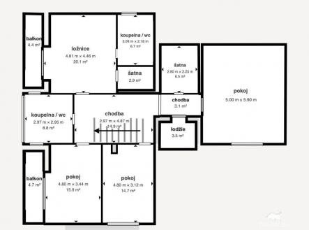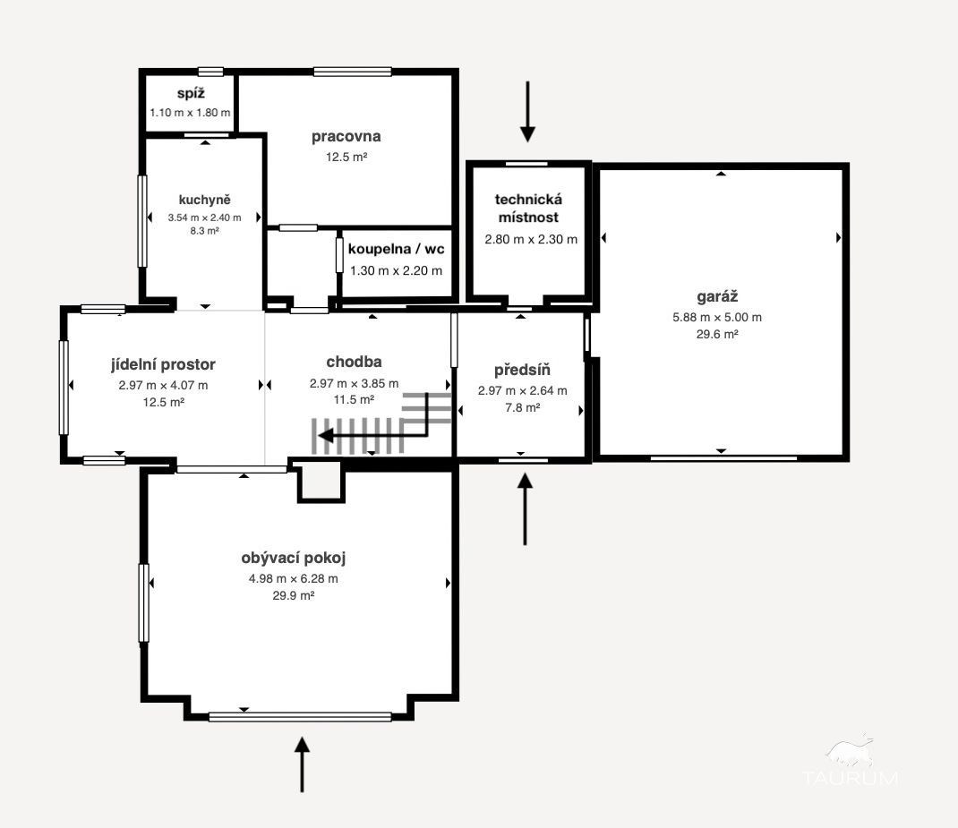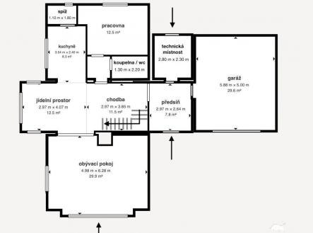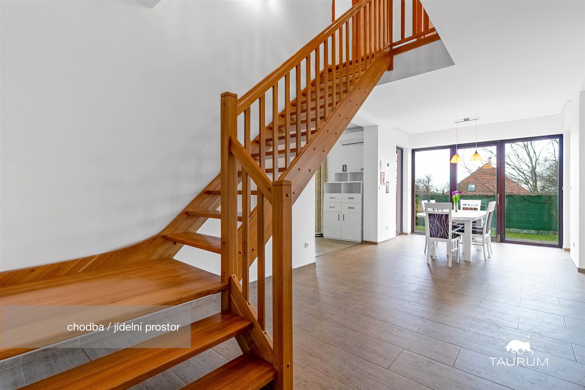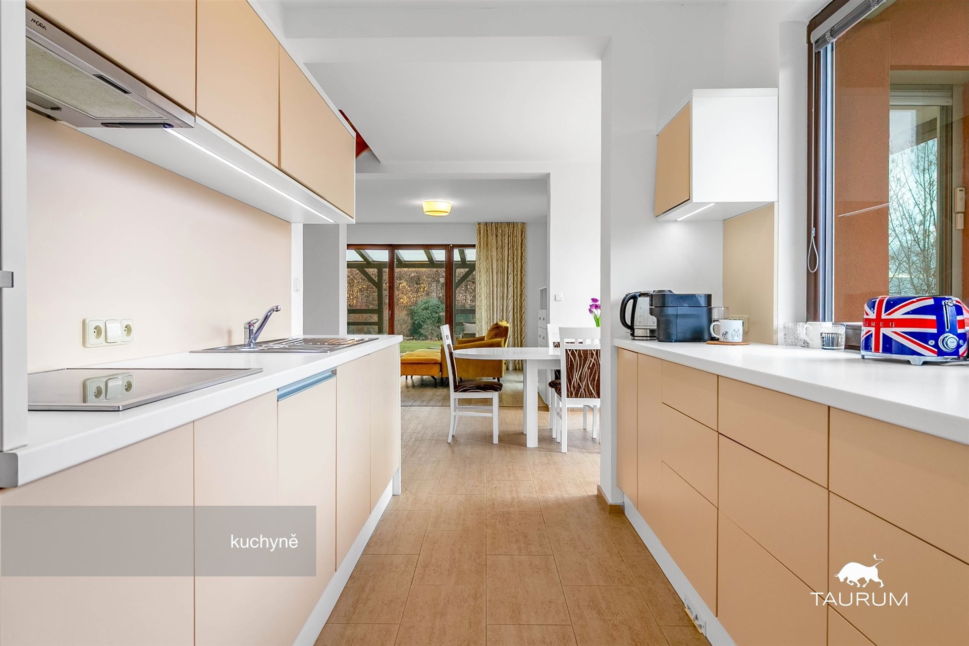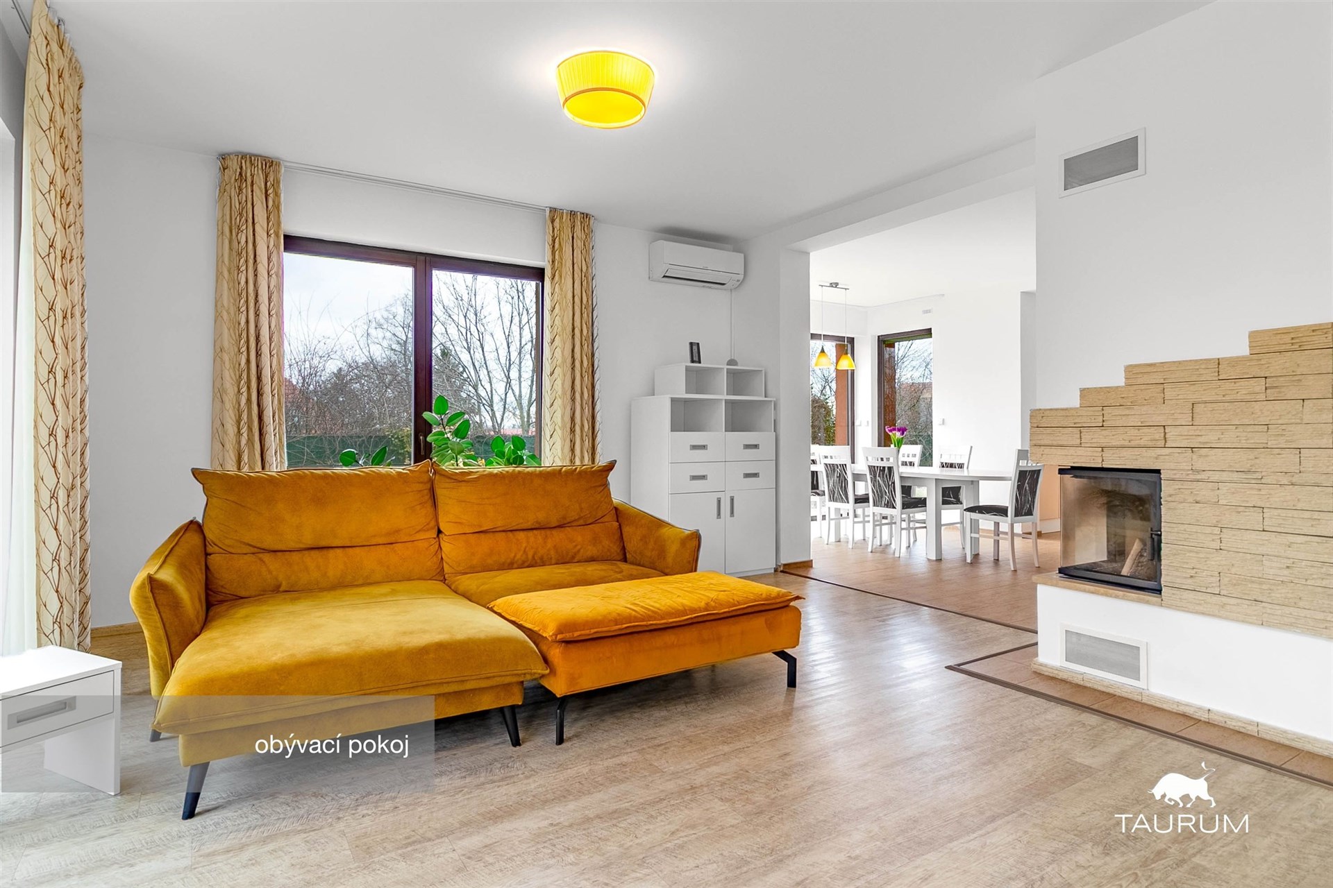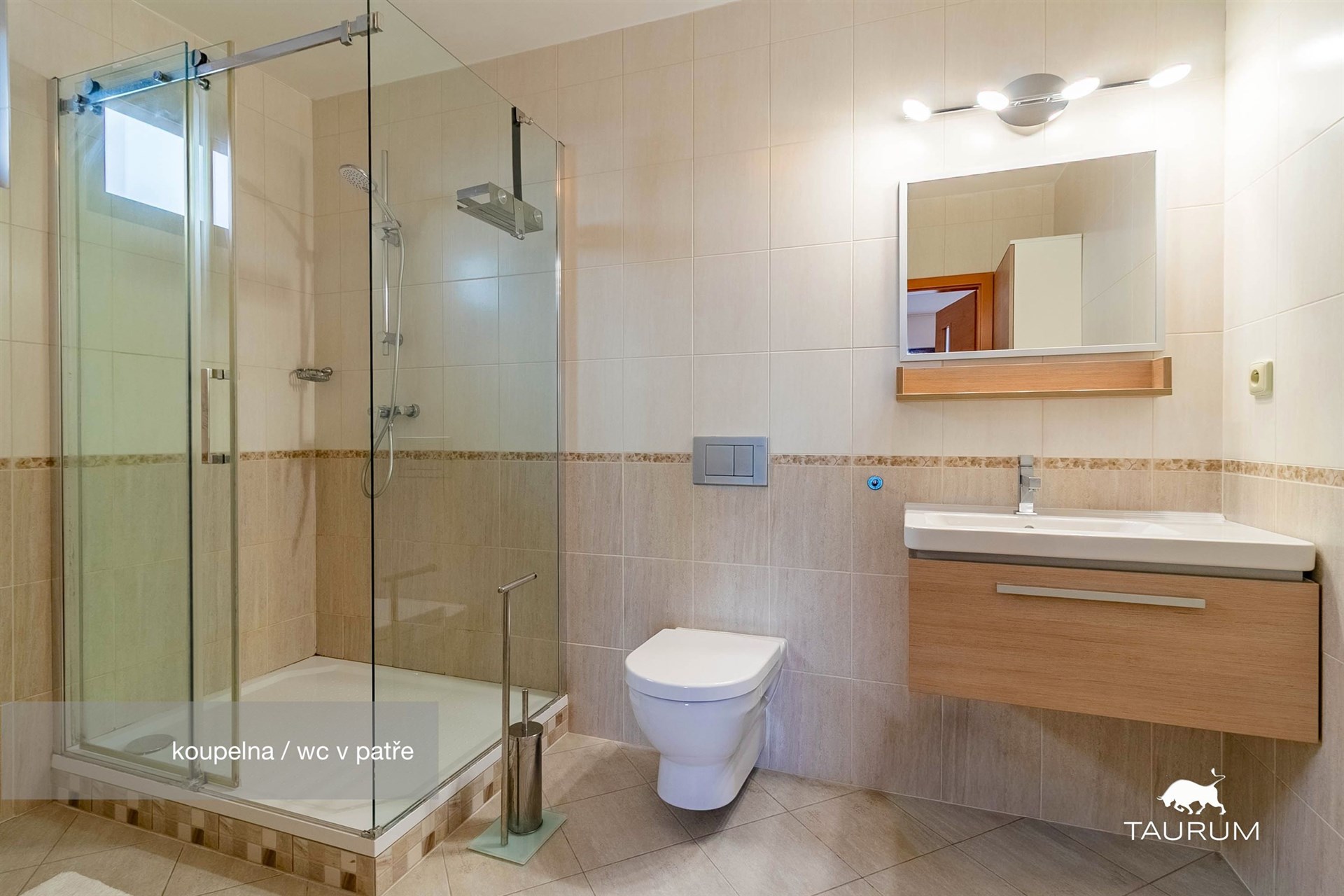 Představuji k prodeji rodinný dům ve velmi dobrém stavu nacházející se na adrese U třešňového sadu 180, Přední Kopanina, Praha 6. Podívejte se na samostatnou stránku domu – odkaz ve videoprohlídce . Na této samostatné webové stránce naleznete více informací o domě. Kompletní představu o dispozici získáte z 3D virtuální prohlídky zde v inzerci. Lokalita: Přední Kopanina je atraktivní a vyhledávaná část Prahy 6, která se vyznačuje zejména klidným charakterem a velkým množstvím zeleně. Lokalita nabízí krásné výhledy do okolní krajiny, blízkost přírody a široké možnosti pro procházky či cyklistiku. Velkou výhodou je rychlá dostupnost do centra města i na Letiště Václava Havla Praha. Přímo v místě se nachází místní úřad, knihovna, několik sportovišť a restaurací. Kompletní občanská vybavenost včetně škol a školek je poté k dispozici v okolních čtvrtích (např. Tuchoměřice či Nebušice). Samotný dům se nachází v uzavřeném areálu, do kterého mají přístup pouze majitelé šesti rodinných domů. Dispozice: Dům je dvoupodlažní o dispozici 6+1 s užitnou plochou 249 m². První podlaží tvoří předsíň, obývací pokoj propojený s kuchyňským koutem (jehož součástí je praktická spíž), jídelní prostor a samostatný pokoj, který v současnosti slouží jako pracovna. Dále se zde nachází koupelna s WC a také technická místnost, ve které je umístěna pračka. Ve druhém nadzemním podlaží jsou k dispozici ložnice, tři samostatné neprůchozí pokoje, dvě šatny a dvě koupelny s WC. Na tomto podlaží se navíc nacházejí dva balkony a lodžie. Součástí domu je také garáž se dvěma parkovacími stáními. Dům stojí na pozemku o velikosti 421 m² a nabízí terasu s pergolou jak z přední, tak i ze zadní strany. Technické informace: Dům je cihlový se střechou z plechové krytiny. V obytných místnostech jsou položeny plovoucí podlahy, v koupelnách a na WC je dlažba. Okna jsou plastová s dvojskly a protihlukovou úpravou. Dům je napojen na veškeré inženýrské sítě: – obecní vodovod – obecní kanalizaci – elektřinu – plyn (plynový kotel zajišťuje vytápění i ohřev vody) Vytápění domu je řešeno kombinací teplovodního podlahového topení a radiátorů. Komfort bydlení dále zvyšuje centrální vysavač, klimatizace dostupná v celém domě nebo funkční krb v obývacím pokoji. Dům má energetickou náročnost třídy C, tedy úspornou. Velkorysé dispoziční řešení domu ocení zejména větší rodina, přičemž nechybí ani prostor pro pracovnu nebo pohodlné ubytování hostů. Pro koupi domu zajišťuji kompletní realitní a právní servis včetně financování hypotečním úvěrem. Kontaktujte mě, prosím, pro domluvení prohlídky: Jan Štěpánek TAURUM reality Uvedené výměry jsou orientační.