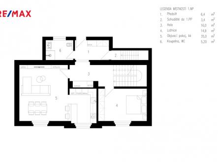 Nabízím Vám k prodeji samostatně stojící jednopodlažní rodinný dům s částečně obytným podkrovím, se zastavěnou plochou 94 m², užitnou plochu 126 m² před rekonstrukcí. Zpracované Vizualizace napovídají, jak by domek mohl vypadat po rekonstrukci podle přiložených plánků. Pozemky o celkové výměře 609 m², sestávají ze zastavěné plochy a nádvoří 283 m² s navazující zahradou o výměře 326 m². Na zahradě je zděná dvougaráž o ploše 42 m², vhodná pro parkování dvou větších osobních vozidel, případně jako prostor pro dílnu, sklad nebo jiné další využití. V přízemí domu je vstupní veranda, kuchyň, dva obytné pokoje, koupelna s WC. Část domu je podsklepena, sklep 9 m² je se vstupem z verandy. Podkroví, kde jsou umístěny dvě menší ložnice a druhou část tvoří nevyužitý půdní prostor s možností rozšíření obytné plochy, je přístupné po venkovním schodišti. Dům je napojen na veřejný vodovod a kanalizaci, připojení k elektrické síti je třífázové (3×400 V), hlavní jistič 25 A. Vytápění zajišťují akumulační kamna doplněná krbovými kamny, ohřev teplé vody elektrickým bojlerem. Na pozemku je i nádrž na dešťovou vodu, která umožňuje úsporné a ekologické zavlažování zahrady. Plyn přiveden na hranici pozemku. Dům je určen ke kompletní rekonstrukci a tím nabízí velmi dobrý stavebně-technický základ pro individuální úpravy – včetně možnosti dispozičních změn, dostavby či modernizace v souladu se současnými standardy. Vhodné jak pro trvalé rodinné bydlení, tak pro investiční využití např. dlouhodobý či krátkodobý pronájem. Radotín je vyhledávaná městská část díky kombinaci klidného bydlení a výborné dostupnosti do centra Prahy (vlak, MHD, rychlé napojení na Pražský okruh). V místě je kompletní občanská vybavenost – mateřské a základní školy, lékařská péče, sportoviště, obchody, restaurace a další služby. V okolí se nachází rozsáhlé přírodní a rekreační zóny (např. cyklostezky, lesoparky, řeka Berounka), což ocení zejména milovníci přírody a aktivního životního stylu. V případě zájmu o více informací nebo sjednání prohlídky mě prosím kontaktujte.