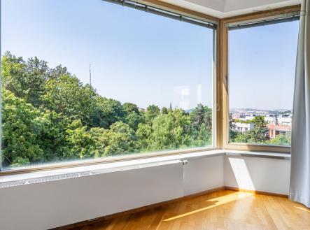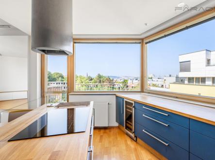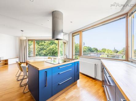 Moderní, mimořádně prostorný a slunný klimatizovaný byt 4+kk (119,5 + dva balkony - 125,8 m²) se dvěma balkony a unikátními výhledy na panorama Prahy, včetně Pražského hradu a Vítkova, stejně jako do zeleně přilehlého parku Parukářka. Nachází se v 5. nadzemním podlaží rezidenčního projektu z roku 2010 s vysokým standardem zabezpečení – 24/7 recepcí, kamerovým systémem a soukromým dětským hřištěm ve vnitrobloku. Rezidenti zde mají zajištěn maximální komfort a pocit bezpečí. Součástí bytu je sklep a parkovací stání v suterénu domu. Klidná rezidenční část pražského Žižkova pak umocňuje příjemnou atmosféru pro moderní a pohodlné bydlení. Dispozici bytu 4+kk tvoří prostorný obývací pokoj s plně vybavenou kuchyňskou linkou a vstupem na balkon s možností posezení a panoramatickými výhledy na Pražský hrad a Vítkov. Dále tři ložnice, z nichž hlavní má vlastní en-suite koupelnu se sprchovým koutem. Druhá, velkoryse řešená koupelna je vybavena vanou, toaletou a bidetem. K dispozici je také samostatná toaleta, vstupní chodba s vestavěnými šatními skříněmi, komora přímo v bytě a sklep. Byt je vybaven kvalitním vestavěným nábytkem na míru, který poskytuje velkorysé množství úložných prostor. Součástí standardu je klimatizace a kuchyňská linka v nadčasovém designu, kompletně osazená vestavěnými spotřebiči značky Electrolux – myčka, indukční varná deska, závěsný odsavač par, parní a mikrovlnná trouba, vinotéka a lednice s mrazákem. V koupelnách je použita velkoformátová dlažba s podlahovým vytápěním. Samozřejmostí jsou hliníkově-dřevěná eurookna s izolačními skly, bezpečnostní vstupní dveře a LED osvětlení ve všech místnostech. K dispozici je také pračka a sušička. Vytápění bytu je řešeno centrální kotelnou v domě. Kupní cena zahrnuje 1 parkovací stání a sklep umístěné v -1. podlaží domu s výtahem. Byt je situován v klidné rezidenční lokalitě mezi parky Parukářka a Vrch Vítkov, pouhých 5 minut chůze od zastávky tramvaje s přímým spojením na metro i k obchodnímu centru Atrium Flora. V docházkové vzdálenosti je kompletní občanská vybavenost – supermarket Billa, lékárna, pošta, drogerie, menší obchody, restaurace, ale také sportovní a relaxační zázemí včetně plaveckého bazénu a fitness centra v hotelu Olšanka. V blízkém okolí se nacházejí také školy, školky a několik dětských hřišť, což ještě více podtrhuje vhodnost bytu pro rodinné bydlení. Díky své poloze i dispozici nabízí byt příjemné a bezpečné rodinné zázemí s veškerým komfortem, a zároveň představuje atraktivní investiční příležitost s dlouhodobě stabilním výnosem vzhledem k vysoké poptávce po nájemních bytech s parkovacím stáním v Praze 3. Velkou výhodou jsou také velmi nízké provozní náklady. Užitná plocha bytu 119,5 + dva balkony