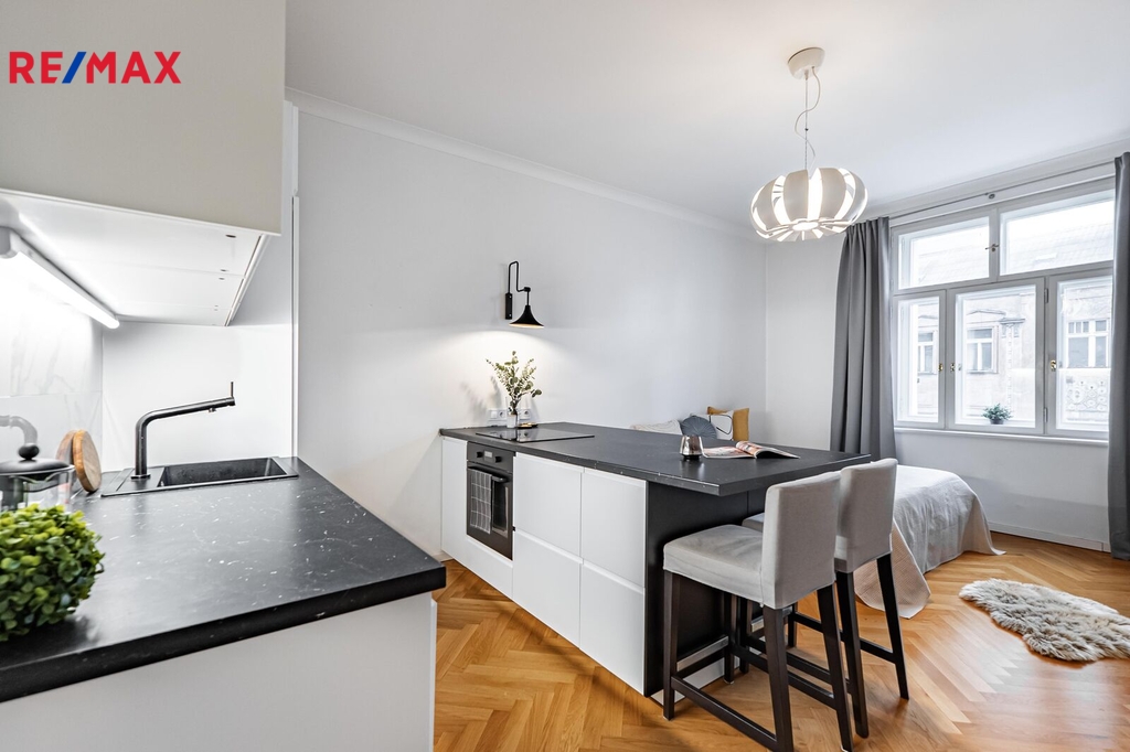 Hledáte stylové startovací bydlení nebo zajímavou investiční příležitost? Tento elegantně rekonstruovaný a částečně zařízený byt 1+kk splní obojí. Naleznete ho v oblíbené lokalitě na pomezí Žižkova a Vinohrad, v těsné blízkosti Riegrových sadů s velkým množstvím volnočasových aktivit a v docházkové vzdálenosti metra a náměstí Jiřího z Poděbrad. Jednotka se skládá ze vstupní předsíně, obývacího pokoje s kuchyňskou linkou s vestavěnými spotřebiči (včetně lednice, myčky nádobí a pračky), barového pultu s varnou deskou a elektrickou troubou a koupelny s toaletou a sprchovým koutem. V obývacím pokoji je k dispozici dostatek úložných prostor nejen v barovém ostrůvku, ale též ve skříních a policích. Byt je vytápěn podlahovým topením, které pohodlně ovládáte instalovanými termostaty v každé místnosti. Majiteli je k dispozici také prostorná sklepní kóje v suterénu domu. Měsíční poplatky bytu jsou ve výši 1.800,- Kč + elektřina 1.500,- Kč. V docházkové vzdálenosti naleznete velké množství bister, kaváren, restaurací, obchodů a služeb. Nejbližší stanice metra linky A - Jiřího z Poděbrad je jen 5 min. chůze od bytu, stejně jako zastávky několika tramvajových linek. Náměstí Jiřího z Poděbrad je dějištěm oblíbených farmářských trhů a dalších kulturních akcí. Jeho aktuálně probíhající revitalizace předpokládá podporu těchto aktivit a vytvoření odpovídajícího zázemí pro jejich další rozvoj, což sebou přináší zvýšenou atraktivitu lokality pro místní obyvatele i cizince. Srdečně Vás zvu na prohlídku!