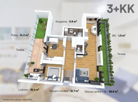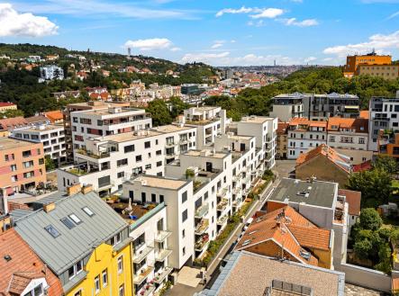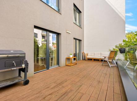 Prodej světlého a moderního bytu 3+kk, 88 m², terasa 45 m2, předzahrádka 30 m2, parkovací stání, Pra