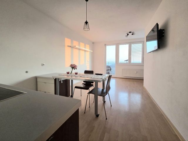 Nabízíme k prodeji světlý byt 1+kk/B o ploše 38 m2 s balkónem o ploše 2,4 m2, situovaný v 8. patře cihlového domu s výtahem a bezbariérovým přístupem ve vyhledávané lokalitě Prahy 8 - Troja, ulice Hnězdenská. Kuchyňská linka se spotřebiči, v předsíni vestavěné skříně. Překrásný výhled do zeleně a Trojského údolí a Prahu. Dispozice bytu je promyšlená a nabízí dostatek prostoru. K bytu náleží sklep. Ihned volný k nastěhování.Kompletní občanská vybavenost v okolí (ZŠ, MŠ, restaurace, obchody, služby, OC Krakov, vysoká škola hotelové, kulturní dům Krakov, poliklinika). Vynikající dopravní dostupnost (bus). Velkou výhodou je docházková vzdálenost k Botanické zahradě nebo ZOO.Osobní vlastnictví. Koupi bytu lze financovat hypotéčním úvěrem.Ukazatel energetické náročnosti budovy: B.