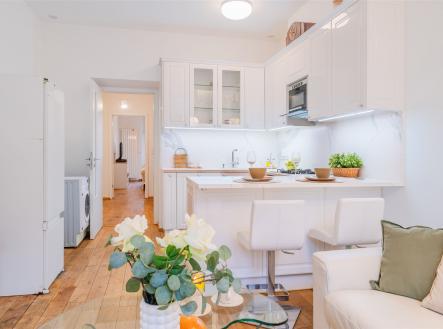 Navštivte tento nádherný byt na prodej, který se nachází na prestižní adrese Vratislavova 60/9, Praha, jen co by kamenem dohodil od historického centra Prahy a kouzelného místa Národní kulturní památky Vyšehrad, která je známá svým bohatým kulturním dědictvím a překrásnými parky. Byt o výměře 56 m² nabízí moderní interiér po výstavbě v roce 2015, který zdůrazňuje elegantní kombinace klasických prvků s nejnovějšími trendy v bydlení. Byt samotný je umístěn v cihlovém domě a nachází se v prvním patře ze čtyř bytového domu s výtahem (zastavuje v mezipatře). Interiér bytu je řešen jako 2+kk, kde 52 m² tvoří jihozápadně orientovaný obývací pokoj s kuchyňským koutem, který je vybaven designovou kuchyňskou linkou od studia Hanák, zařízen spotřebiči Küppersbusch, a to plynovým sporákem, elektrickou troubou, digestoří, myčkou a mikrovlnnou troubou. Na severovýchodní straně bytu je samostatná ložnice s kumbálem a vstupem na balkon. V propojovací vstupní chodbě najdeme koupelnu s vanou a sprchovým koutem, na druhé straně potom samostatnou toaletu. Zbytek prostoru je chytře rozvržen tak, aby poskytoval maximální komfort a praktičnost. Byt disponuje balkonem o velikosti 2 m², který je ideálním místem pro relaxaci s výhledem do klidného dvora. Součástí bytu je také sklep o rozměrech 2 m², který nabízí další úložný prostor. Byt je vytápěn pomocí plynového kotle, který stejně tak zajišťuje ohřev vody. Dům má výtah, což zvyšuje komfort obyvatel. Okolí domu je uzpůsobeno pro pohodlné bydlení všech věkových skupin a je robustně zajištěné všemi potřebnými službami jako jsou obchody, restaurace, školy a zdravotnická zařízení. Vzhledem ke své poloze v centrální části Prahy je byt dobře dostupný jak vlastním autem, tak městskou hromadnou dopravou. Předností této lokalizace je rovněž kompletní občanská vybavenost a spojení s přírodou prostřednictvím nedalekých parků a historických památek, což dělá z tohoto místa velmi žádané bydlení. Při návštěvě si nezapomeňte prohlédnout rovněž společnou zahradu ve velmi klidném vnitrobloku, která je součástí domu, poskytující další prostor pro odpočinek. Pro více informací či domluvení prohlídky mě neváhejte kontaktovat, rád vám vše podrobněji představím a zařídím osobní prohlídku. Toto je skutečně mimořádná příležitost vlastnit luxusní byt v jednom z nejžádanějších míst Prahy. Martin Matela LEV REALIT