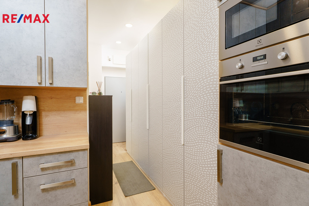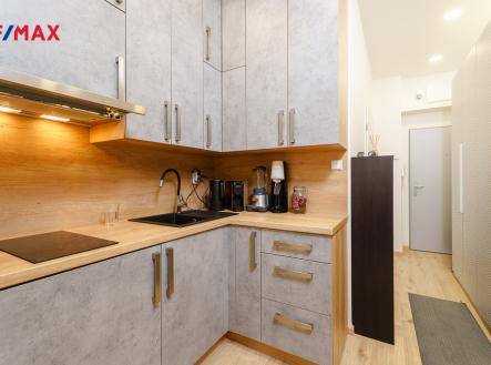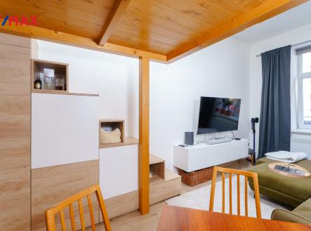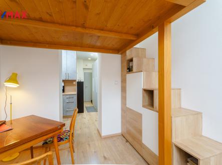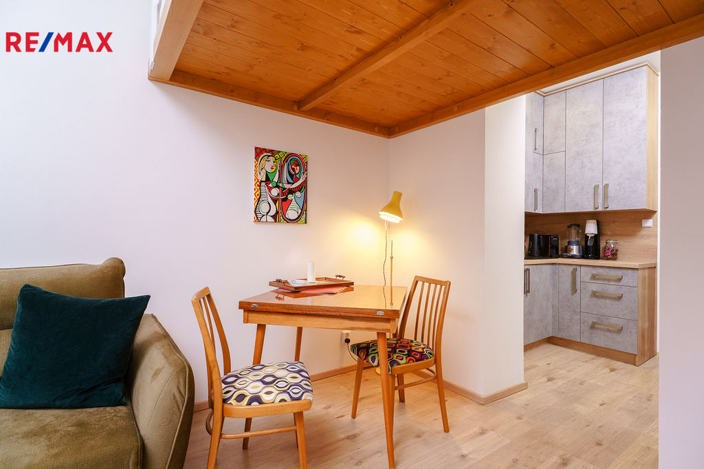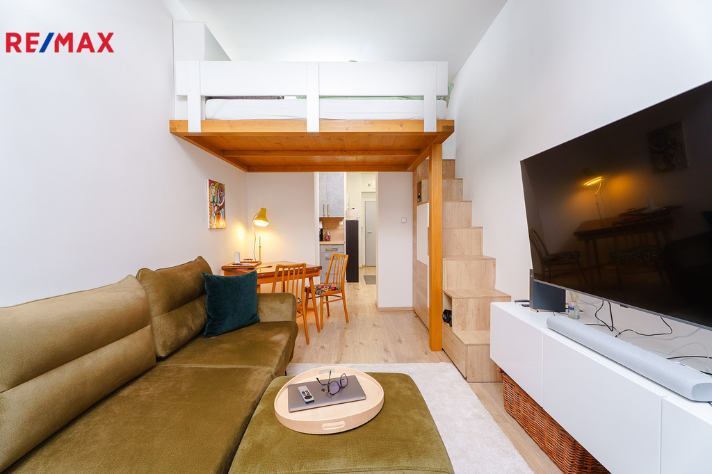 Nabízíme výhradně k prodeji luxusní bytovou jednotku 1+kk v Praze 9 - Libni, ul. Kovářská. Byt o výměře 28,1 m2 se nachází v prvním nadzemním podlaží pěkného bytového domu v původní libeňské zástavbě. Dům je po velice zdařilé rekonstrukci, celkově působí pěkně a moderně, podařilo se zachovat i secesní ráz stavby, zejména exteriérů. Do nově zrekonstruovaného bytu se vstupuje přes před chodbičku, která je pod uzamčením a slouží pouze pro dva přilehlé byty. Byt je vyřešen velmi prakticky. Obývací pokoj s vestavěným patrem pro odpočinek a spánek, kuchyňský kout, koupelna se sprchou a WC, vstupní chodba. Obývací pokoj je vybaven pohodlnou sedací soupravou a nábytkem na míru, který zdařile zakomponoval i masivní dřevěné patro s dvou postelí. Vestavěný nábytek se skříněmi, mnoha úložnými prostory a moderní kuchyňskou linkou s vestavěnými spotřebiči promyšleně a maximálně využívá prostor. Vybaveni je nadstandardní, nové a praktické. Je a zůstane součástí bytu, vyjma jídelního stolu a židlí. Také koupelna se sprchovým koutem a WC působí krásně, je vydařená, prostorná s místem pro sušičku. Vytápění a teplá voda je zajištěna elektrokotlem umístěným v podhledu koupelny. K bytu náleží sklep v suterénu domu o výměře 3,70 m2 a není započítán v podlahové ploše bytu. Poloha bytu je zcela výjimečně výhodná, jen asi 200 m od stanice metra Českomoravská, skvělé je i tramvajové spojení s centrem Prahy v přiléhající ul. Sokolovská. Plná občanská vybavenost v bezprostředním okolí. Kulturní středisko GONG, haly a sportoviště u Rokytky, také sousedství Sazka Arény s její sportovní a kulturní nabídkou jsou dalšími výhodami bydlení v nabízeném nevelkém, ale mimořádně vydařeném bytě.